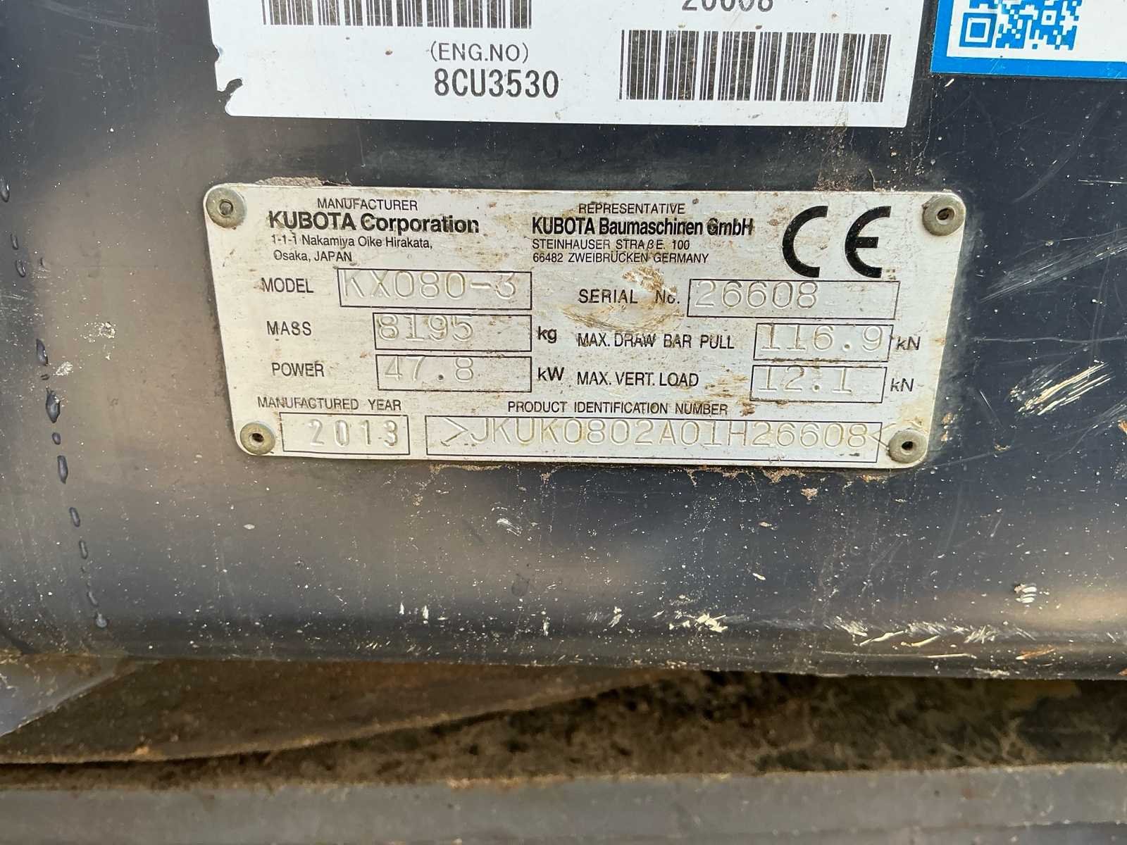 2013 kubota kx080-3 midigraafmachine