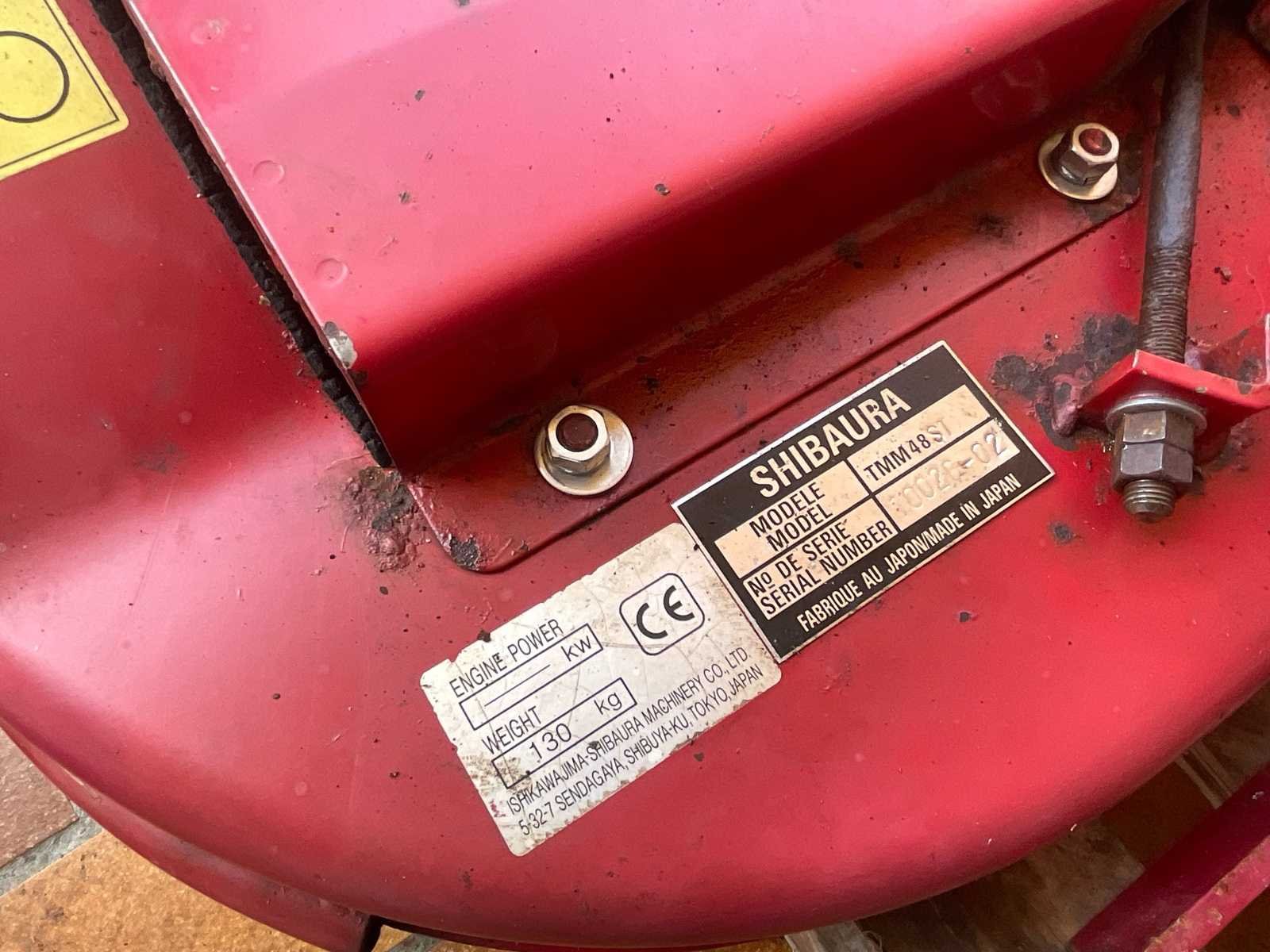 Shibaura TMM48ST professioneel achtermaaiplatform, geschikt voor compacte microtractoren uitgerust met een PTO (PDF). Snijbreedte van ongeveer 48 inch (± 122 cm). Uitgerust met zijn transmissie-gimbaal. Verstelbare meterwielen aan de voorkant voor het instellen van de snijhoogte. Volledig achtermontagesysteem zoals te zien is op de foto's. Robuuste Japanse machine, ontworpen voor intensief gebruik. Technische kenmerken: Merk: Shibaura Model: TMM48ST Snijbreedte: ± 122 cm (48") Gewicht: 130 kg Schijf: PTO (PDF) Oorsprong: Japan Status: Tweedehands staat met normale gebruikssporen (krassen, lakafslag). Operatie niet recent getest. Verkocht zoals het is, zoals te zien is op de foto's. No Merk: Shibaura Type: plateau de tonte pour micro-tracteur TMM48ST Serienummer: 10026-02
