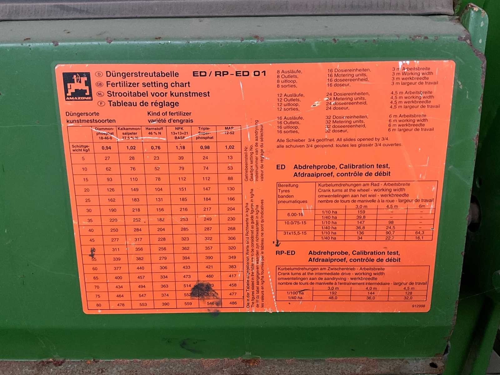 Zeer goede zaaimachine in uitstekende staat, alles werkt perfect No Merk: Amazone Type: ED 301 Bouwjaar: 2000 Serienummer: 002164 Eigen gewicht: 1100kg
