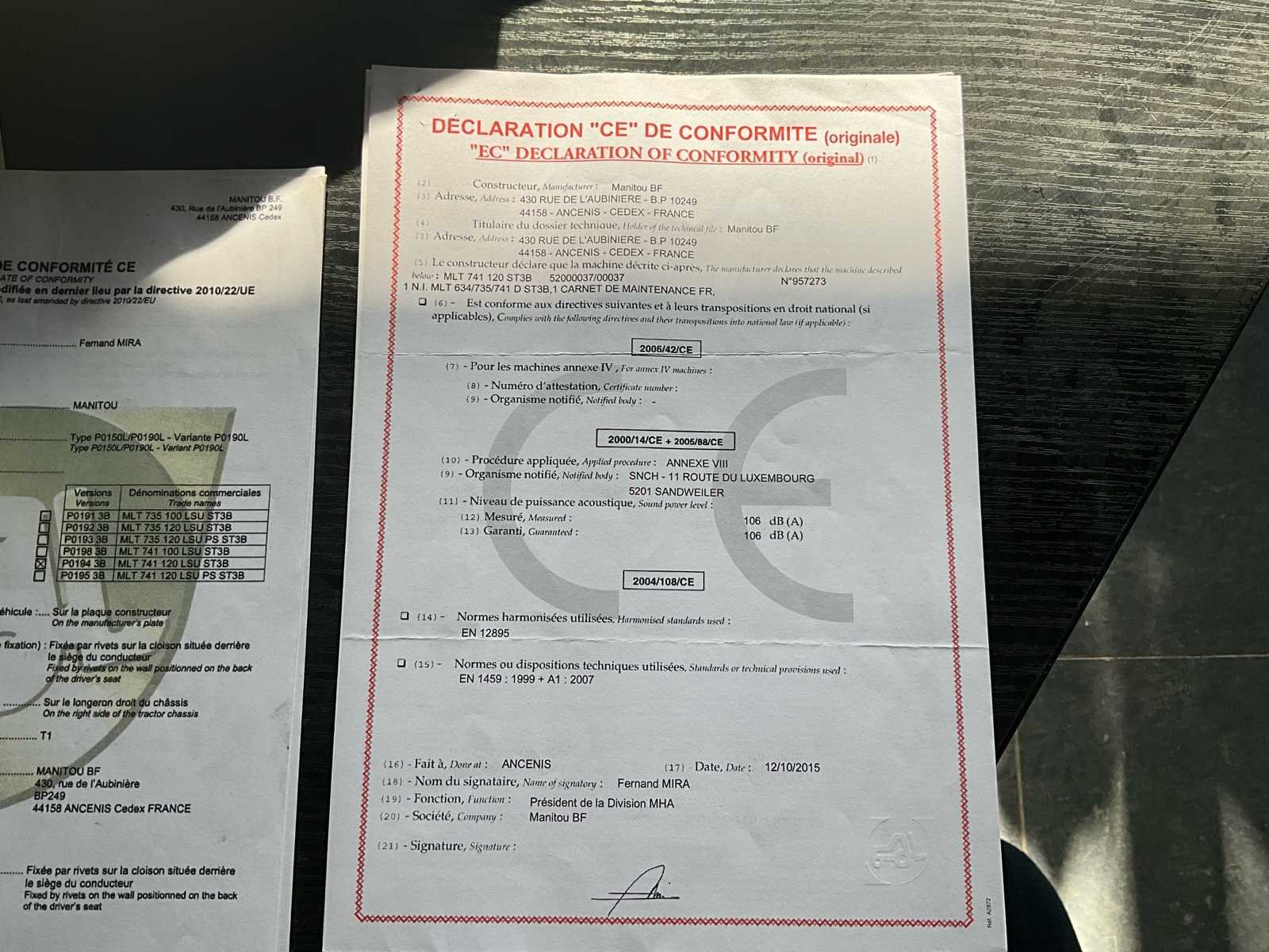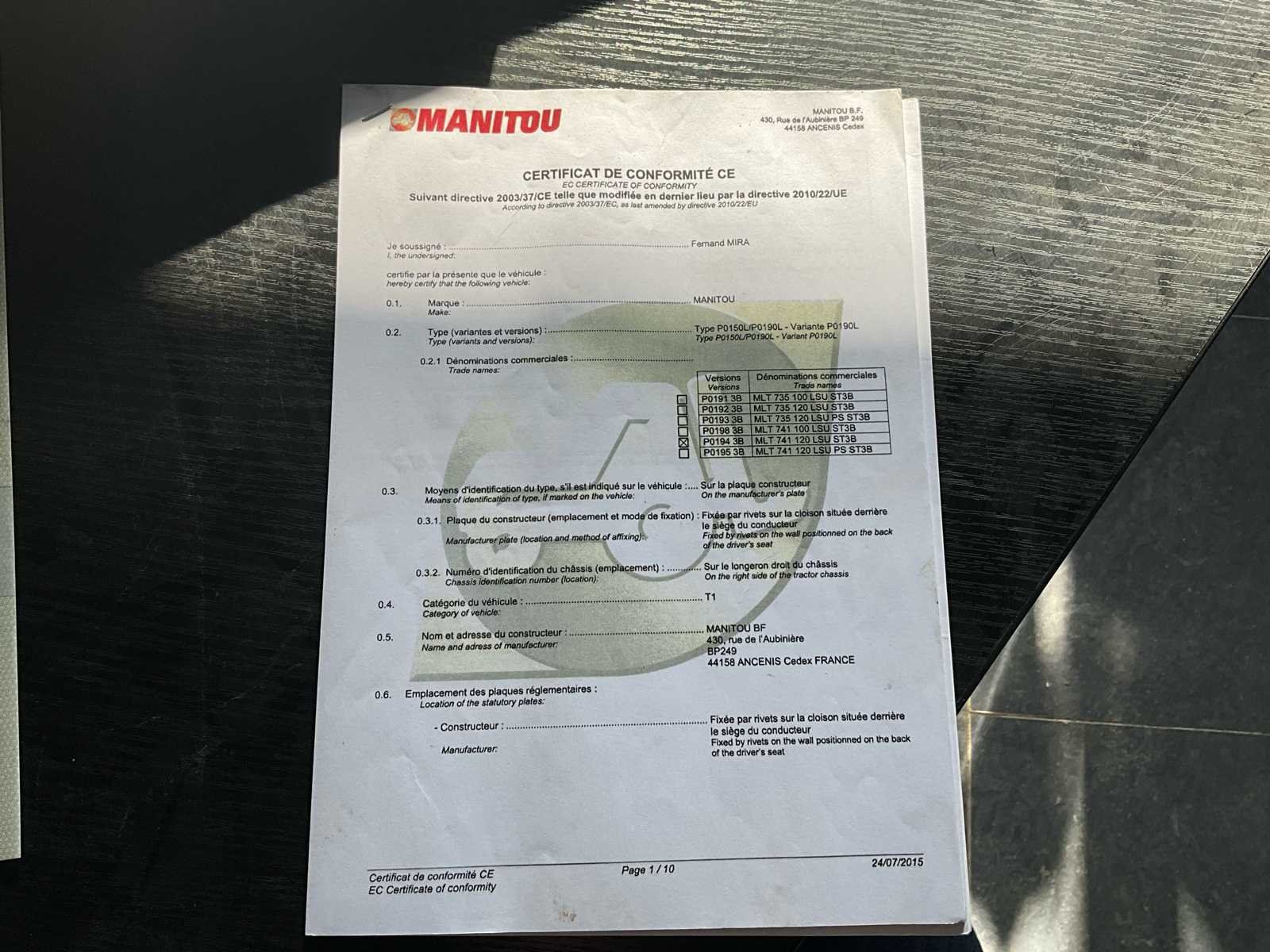 Werkt perfect De telehandler wordt verkocht zonder palletvorken Documenten België No Merk: Manitou Type: MLT 741-120 LSU ST5B Bouwjaar: 2015 Serienummer: 957273 Motorvermogen (kW): 90kW Hefvermogen: 4100kg Hefhoogte: 7000mm Cabine: true