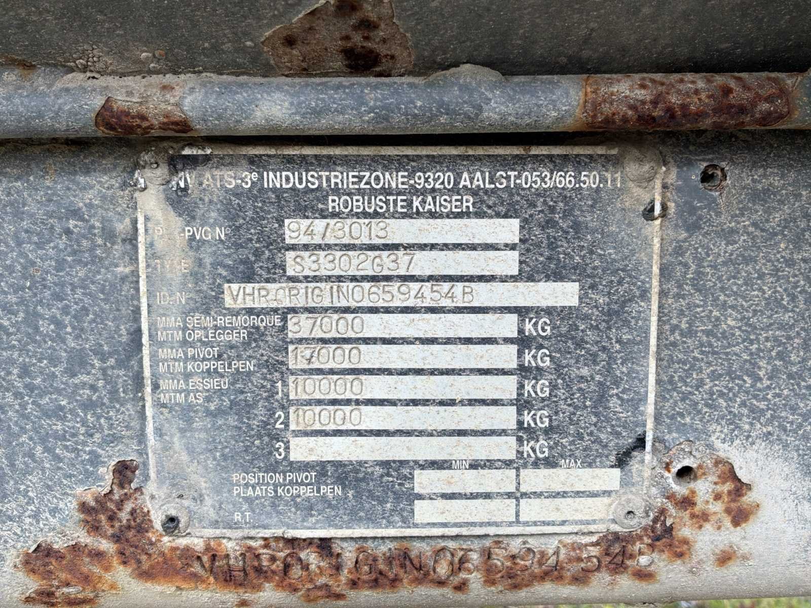 Normale slijtage aan de onderkant van de emmer. Hydraulische deur. Werkt perfect. Draaiafstand - voorkant van het lichaam = 130 cm. Draaiafstand - steunen = 220 cm. No Merk: KAISER Type: S3302G37 Bouwjaar: 1994 Serienummer: VHR0RIGIN0659454B-01 Eigen gewicht: 7220kg Totale afmeting L: 7900mm Totale afmeting Breedte: 2500mm Totale afmeting Hoogte: 2900mm