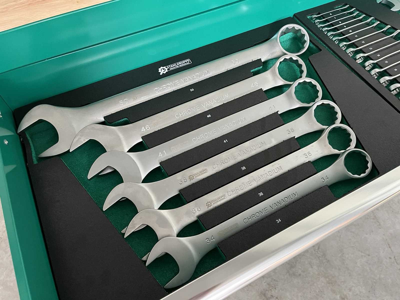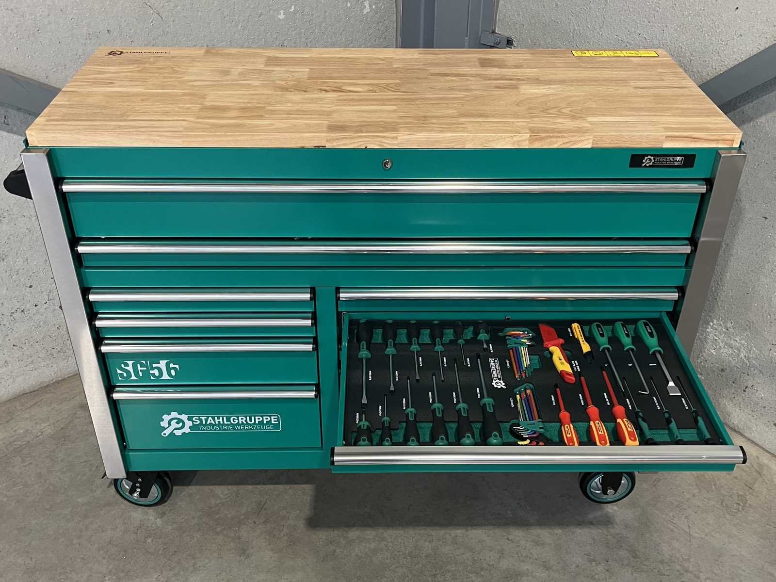 <li><b>Heavy Duty gereedschapswagen</b></li> <li><b>gebruik:</b> voor professionals</li> <li><b>aantal laden:</b> 11 laden</li> <li><b>aantal gevulde laden:</b> 9 gevulde laden</li> <li><b>gereedschap:</b> chroom-vanadium gereedschap</li> <li><b>inhoud:</b> <ul> <li>29-delige ring-steeksleutel set (6 mm - 50 mm)</li> <li>3 ratelsleutel sets met doppen & bitsen (1/4”, 3/8” & 1/2”)</li> <li>11-delige ring-ringsleutel set (6*7 mm - 30*32 mm)</li> <li>verstelbare moersleutel</li> <li>12-delige tangen set</li> <li>2 hamers & 4 vijlen</li> <li>puntslag en beitel set</li> <li>12 schroevendraaiers</li> <li>inbussleutels, Torxsleutels, precisiegereedschap</li> <li>21-delige T-sleutelset</li> <li>34-delige krachtdoppen set (12 mm - 50 mm) + Torx & inbus doppen & ratelsleutel 3/4,”</li> <li>LED-lamp, zaag, schaar, mes, meetgereedschappen</li> <li>enzovoort...</li> </ul> </li> <li><b>staat:</b> ongebruikt, in de originele verpakking</li> <li><b>afmetingen:</b> L 140 x B 60 x H 110 cm</li> Nee Merk: Stahlgruppe Type: SG56