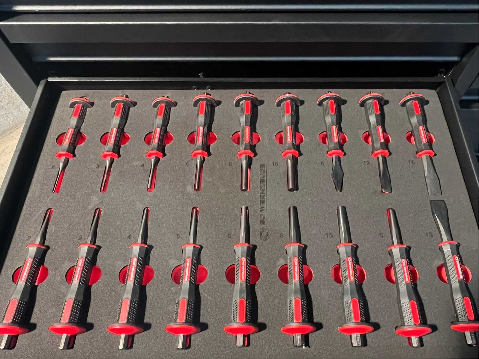 <ul> <li><strong>Merk:</strong> Stahlgruppe</li> <li><strong>Type:</strong> SG32-24</li> <li><strong>Aantal laden:</strong> 14 laden</li> <li><strong>Aantal gevulde laden:</strong> 11 gevulde laden</li> <li><strong>Materiaal:</strong> Chrome Vanadium gereedschap</li> <li><strong>Inhoud:</strong> <ul> <li>3 complete dopsleutelsets (1/2”, 3/8” & 1/4”)</li> <li>momentsleutel (20-210 Nm)</li> <li> ring-steeksleutelset (6-32 mm) + steek & ring-ratelsleutelset (8-19 mm)</li> <li>ringsleutelset (6-32 mm) & Torx sleutelset (T6-T70)</li> <li>beitels en pendrijvers (18 stuks)</li> <li>T-greep dopsleutels ( 6-14 mm) & vijlen (4 stuks)</li> <li>schroevendraaiers (21 stuks)</li> <li>T-greep inbussleutels (10 stuks) & T-greep Torxsleutels (10 stuks)</li> <li>diverse tangen (9 stuks)</li> <li>krachtdoppen (34 stuks)</li> <li>diverse hamers (3 stuks)</li> <li>VDE-gereedschap (9 stuks)</li> <li>enzovoort...</li> </ul> </li> <li><strong>Staat:</strong> ongebruikt, in de originele verpakking</li> </ul> Nee Merk: Stahlgruppe Type: SG32-24