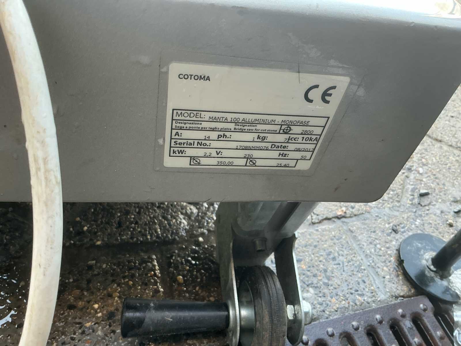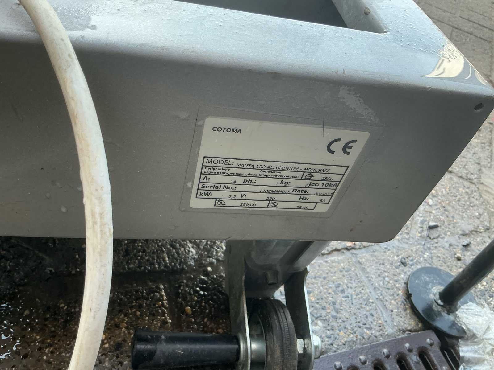 Werkende tegelsnijder wordt verkocht door het beëindigen van het bedrijf. No Merk: Cotoma Model: M Product type: Manga 100 Alluminium Monofase