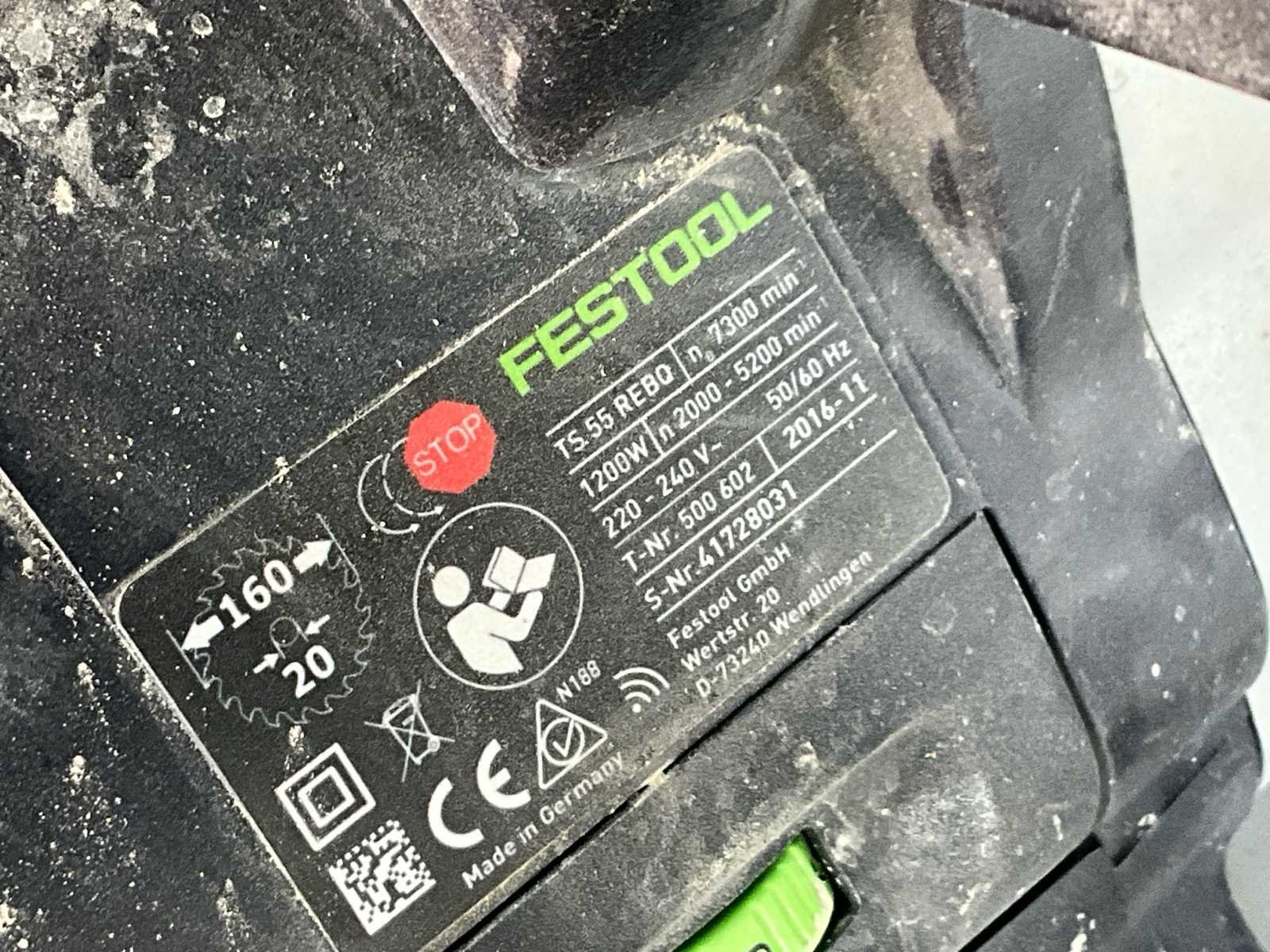 Kwalitatieve Festool invalzaag TS 55 REBQ-Plus in originele Festool Systainer koffer. Een van de meest gebruikte professionele zagen voor nauwkeurig plaatmateriaal en meubelwerk - Vermogen: 1200 W Zaagblad: 160 mm Toerental: 2000 – 5200 rpm Bouwjaar: 2016 Diepte-instelling met schaal Elektronische toerentalregeling Softstart Aansluiting voor stofafzuiging 📦 Inclusief: Originele Festool Systainer koffer Zaagmachine Stofzak Kabel 🛠️ Staat: Volledig functioneel No Merk: Festool Model: TS 55 REBQ-Plus