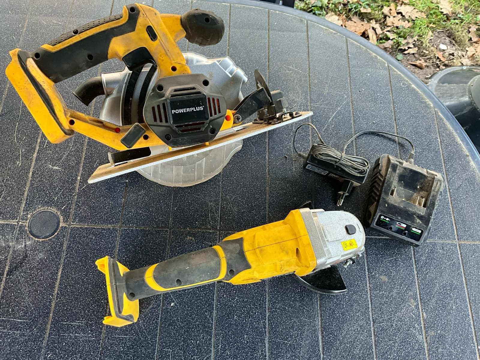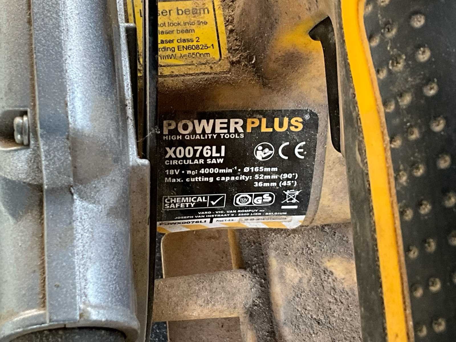 Inbegrepen in dit lot: Powerplus X0076LI cirkelzaag (18V) Zaagblad: Ø165 mm Toerental: ±4000 rpm Max. zaagdiepte: 52 mm (90°) 36 mm (45°) Powerplus X0079LI haakse slijper (18V) Schijfdiameter: Ø115 mm Toerental: ±7000 rpm Schroefdraad: M14 Extra inbegrepen: Originele Powerplus lader Let op: Batterij niet inbegrepen. Beide machines werken op het Powerplus 18V accusysteem. Staat: gebruikt maar volledig in orde. Ideaal voor doe-het-zelf, renovatie of als extra machines. Prijs voor het volledige lot: €35. No Merk: PowerPlus