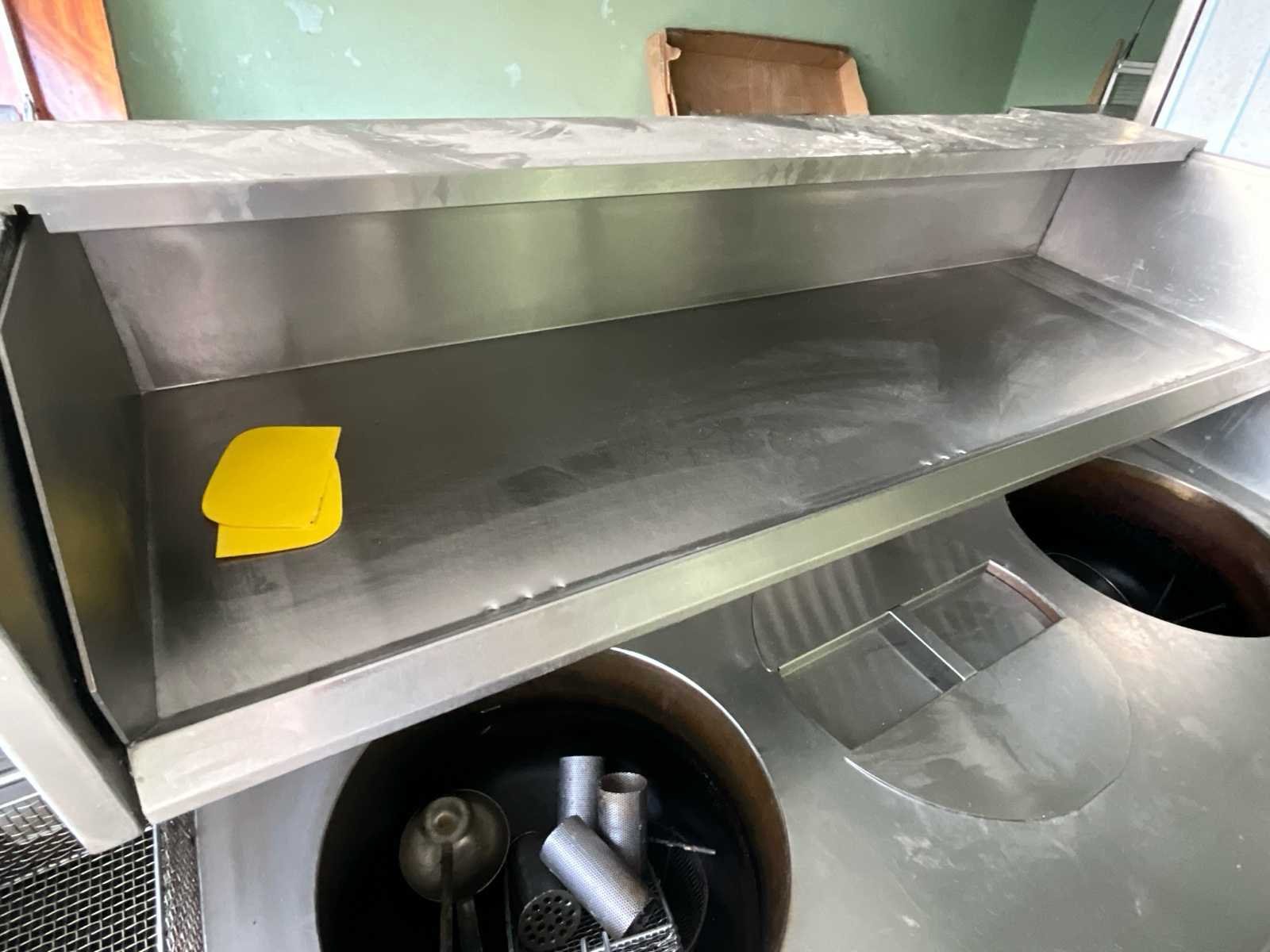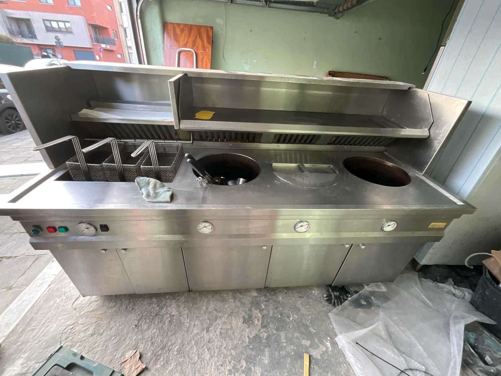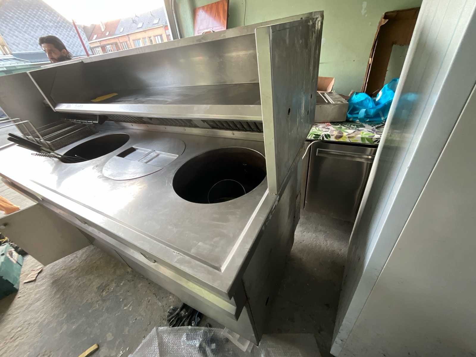 Sinds 5 maand losstaand voor verhuis, hiervoor steeds werkende staat! Inox rek inclusief No Merk: Hegro Model: HFD344 Bouwjaar: 2019 Type: Frituur Lengte: 100cm Breedte: 220cm Hoogte: 180cm Materiaal: Inox Gewicht: 800kg Aantal zones: 4 Vermogen (kW): 84 Gas: true
