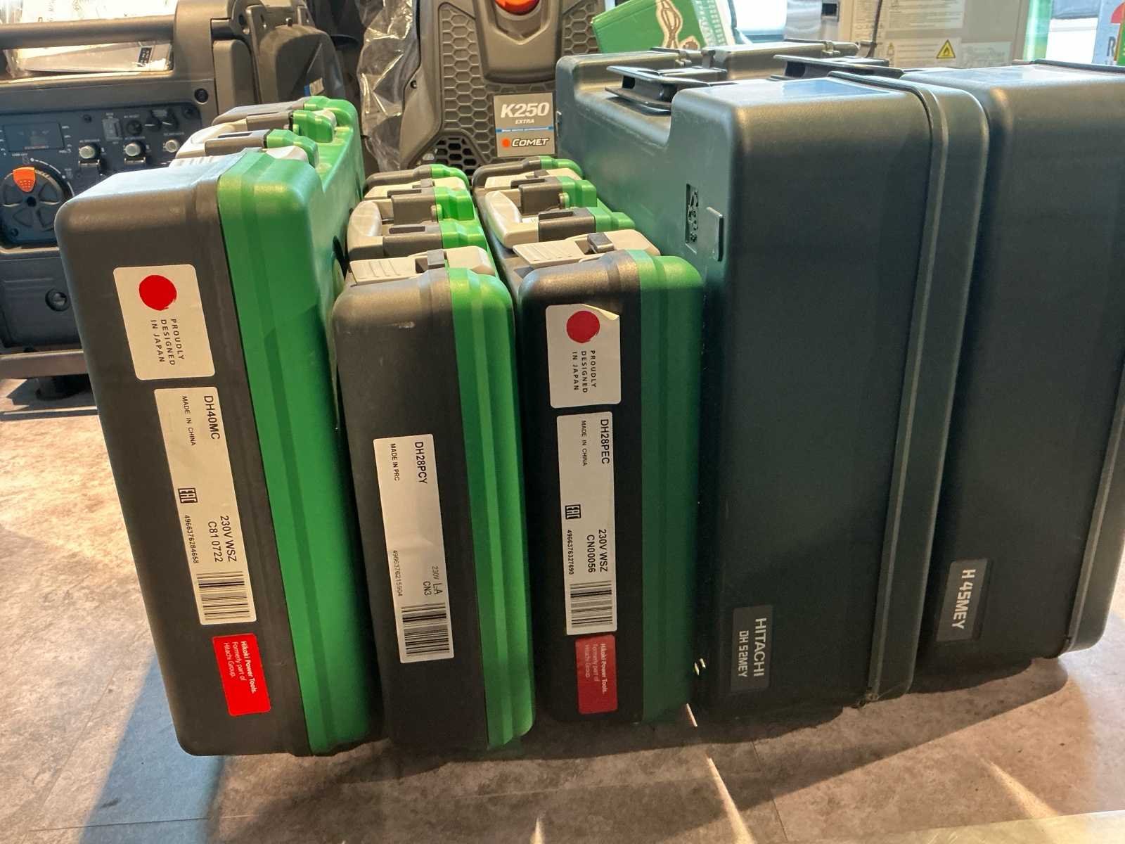 Volledig lot ongebruikte Hikoki klopboormachines nog verpakt in doos. Bestaande uit 1x Hikoki DH28PEC, 1x DH40MC, 1x H45MEY, 1x DH45MEY,Hikoki UM12VST2 Mixer en 2x Milwaukee PLH 20 Nee Merk: Hikoki / Milwaukee Type: Meerdere modellen Klopboormachine: true Boorhamer: true Boor-/breekhamer: true SDS fitting: true Aansluiting: 230V