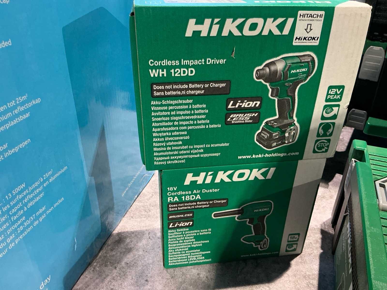 Volledig lot ongebruikte Hikoki schroef- machines nog verpakt in doos. Bestaande uit 1x Hikoki WH12DD, 1x RA18DA, 1x DS18DBL2, 1x SV1813DA, 1x NT1865DBALW2Z, 1x M1808DA, 1x P18DSL, 1xCR18DBL met hit-system case IV, 1x DH18DBL met 5.0AH 18V batterij en lader, 1x WR18DBDL2, 1x G18DBBK, 1x CR18DA met rolkarretje. Nee Merk: Hikoki Type: Meerdere modellen