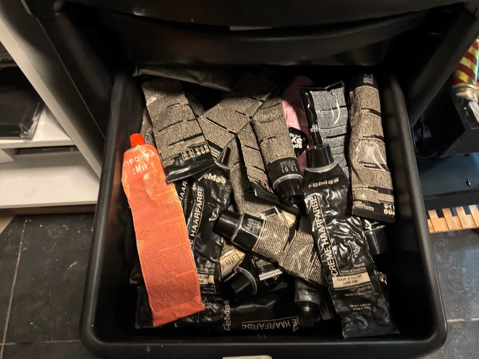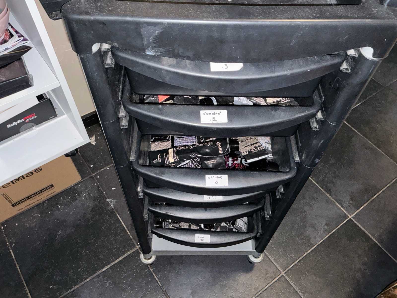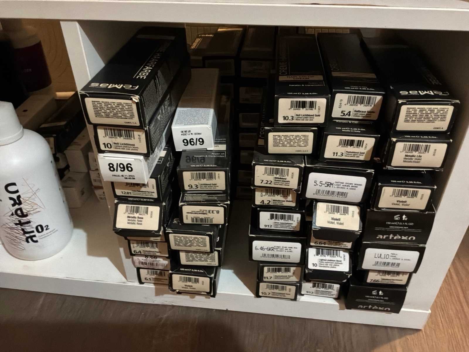 Veel van een kapper die stopt met zijn activiteiten. De bundel bevat verschillende producten: Haarverzorging Kleuring 2 rekken Een stijltang No