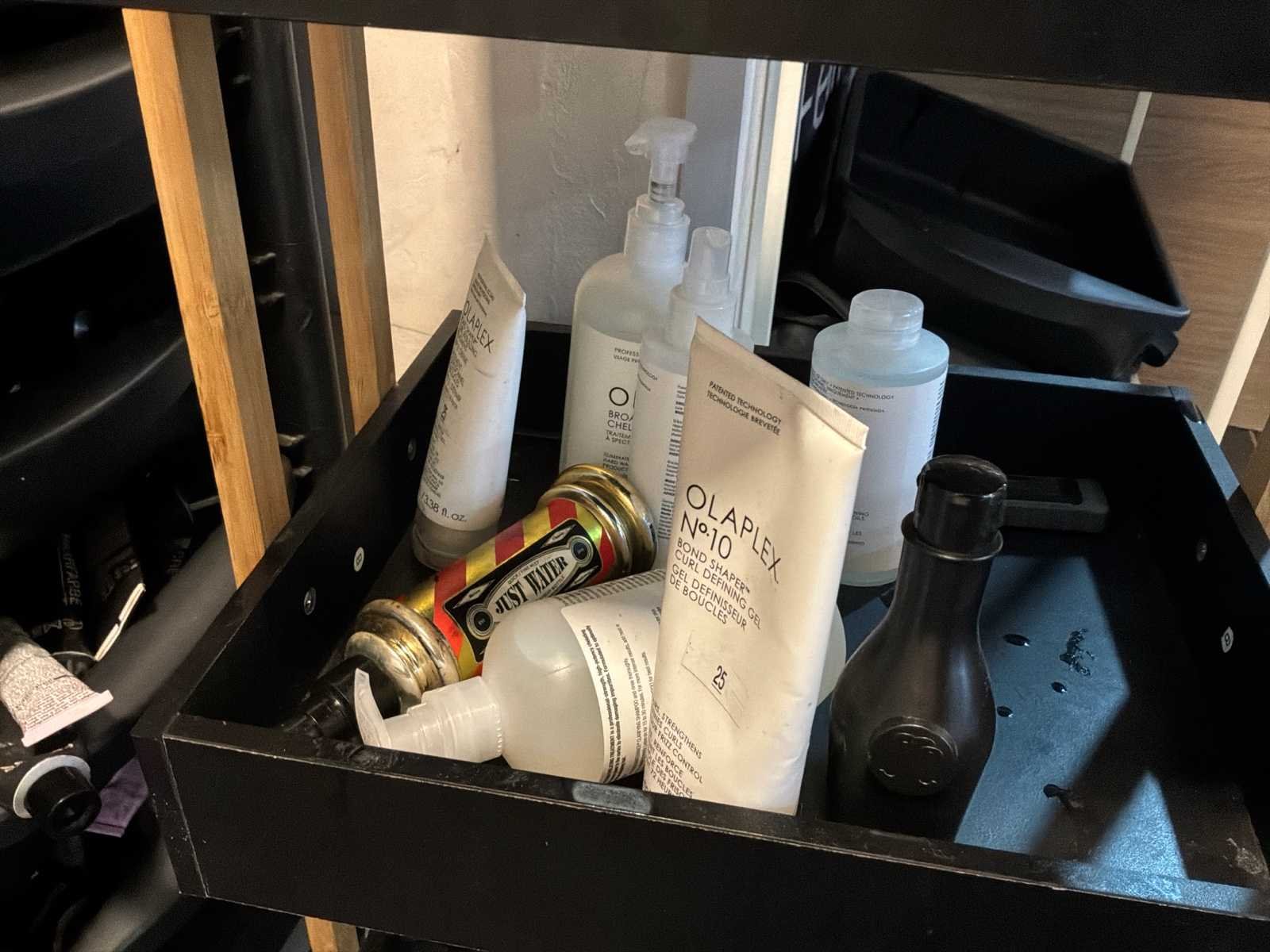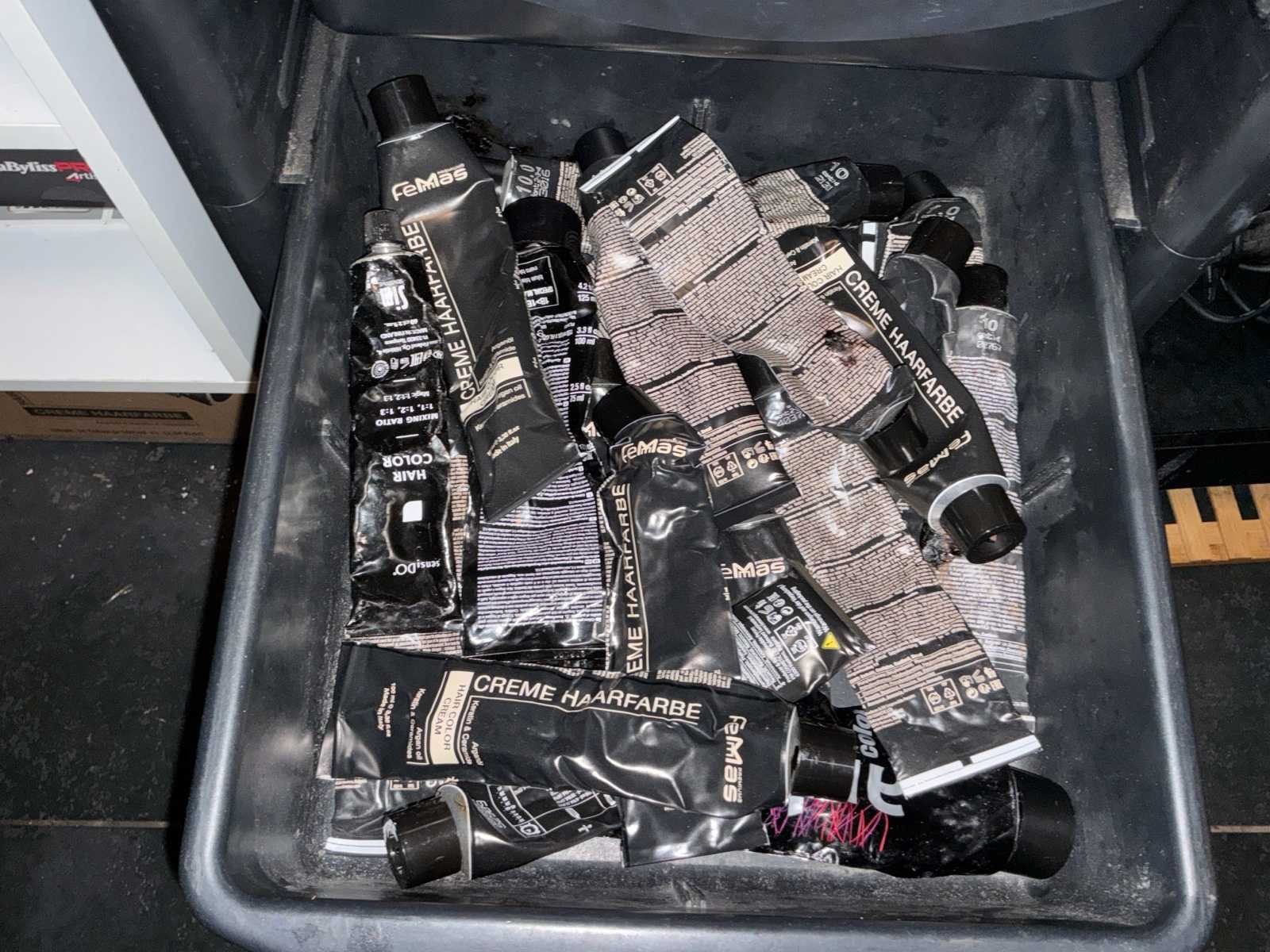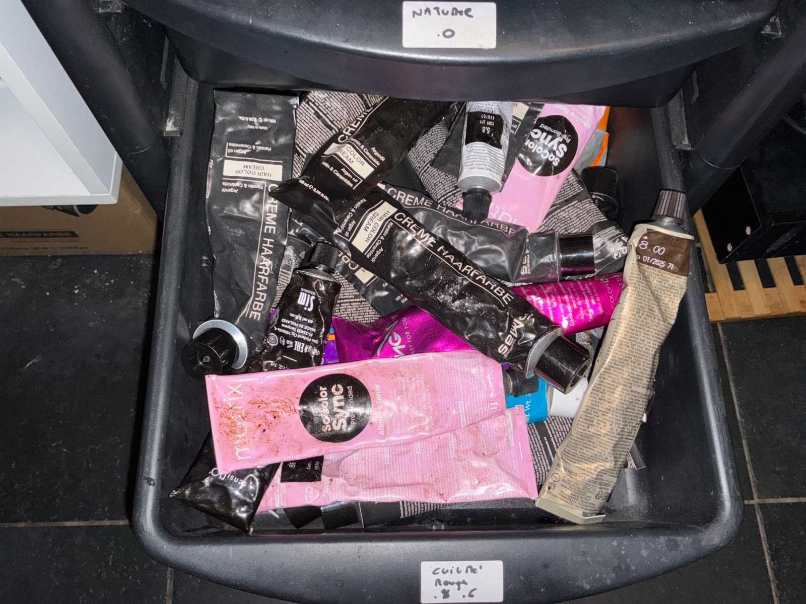 Veel van een kapper die stopt met zijn activiteiten. De bundel bevat verschillende producten: Haarverzorging Kleuring 2 rekken Een stijltang No
