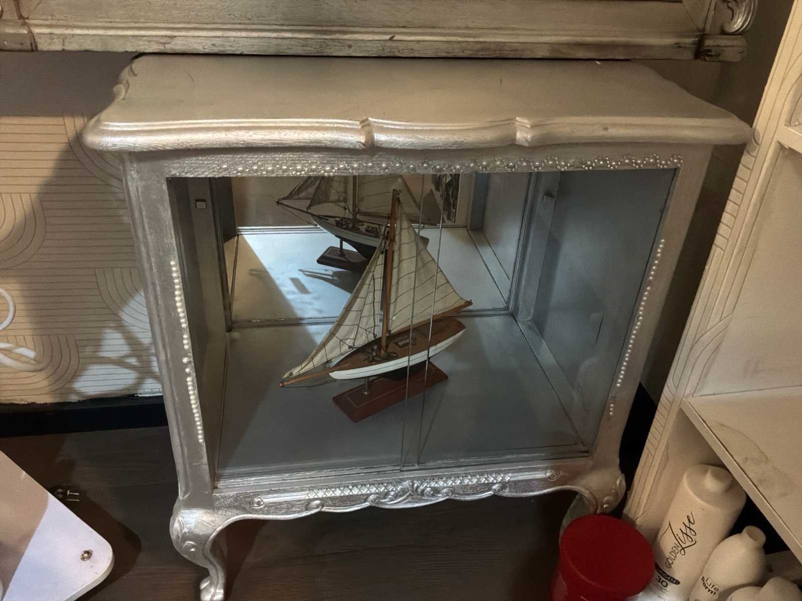 + 1 grote spiegel en een zilveren ladekast No