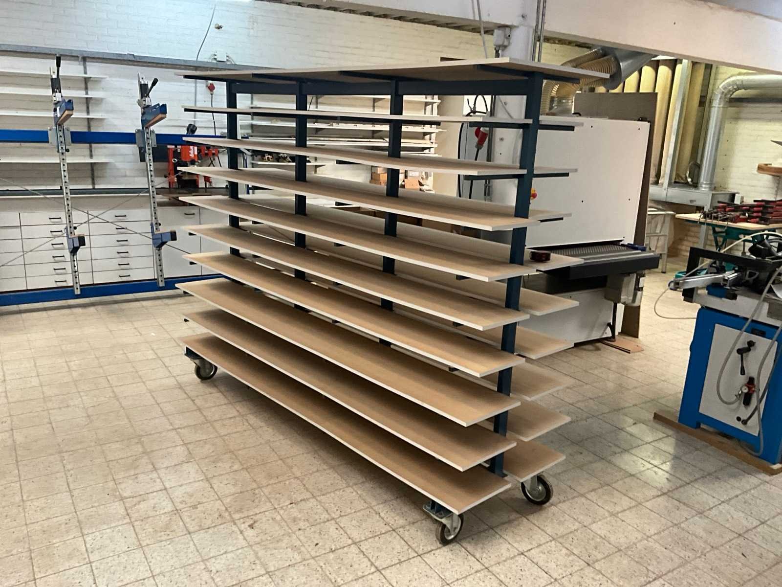 Verrijdbaar en voorzien van 10 niveaus met houten legplanken. Nee Lengte: 260cm Breedte: 85cm Hoogte: 200cm