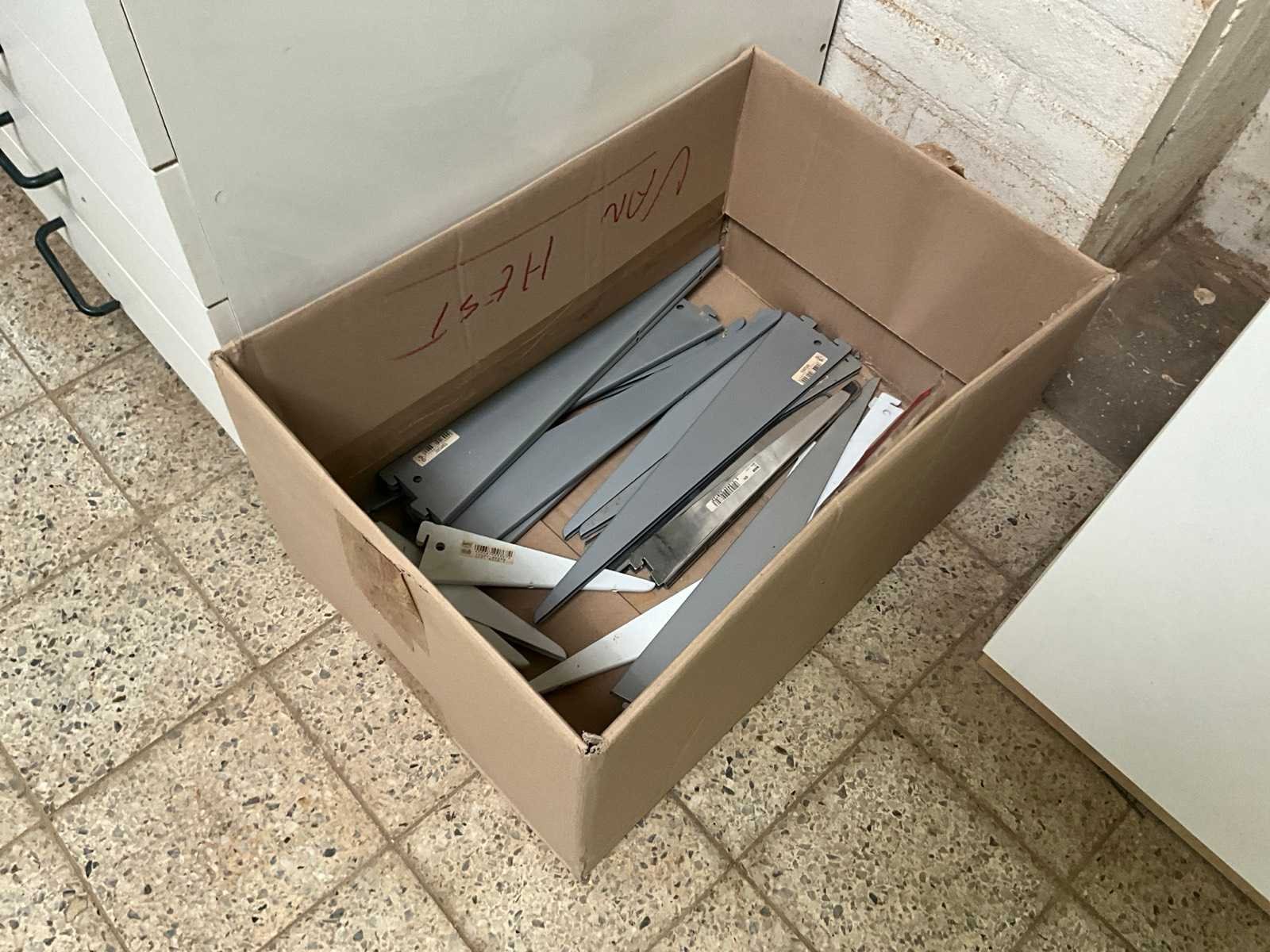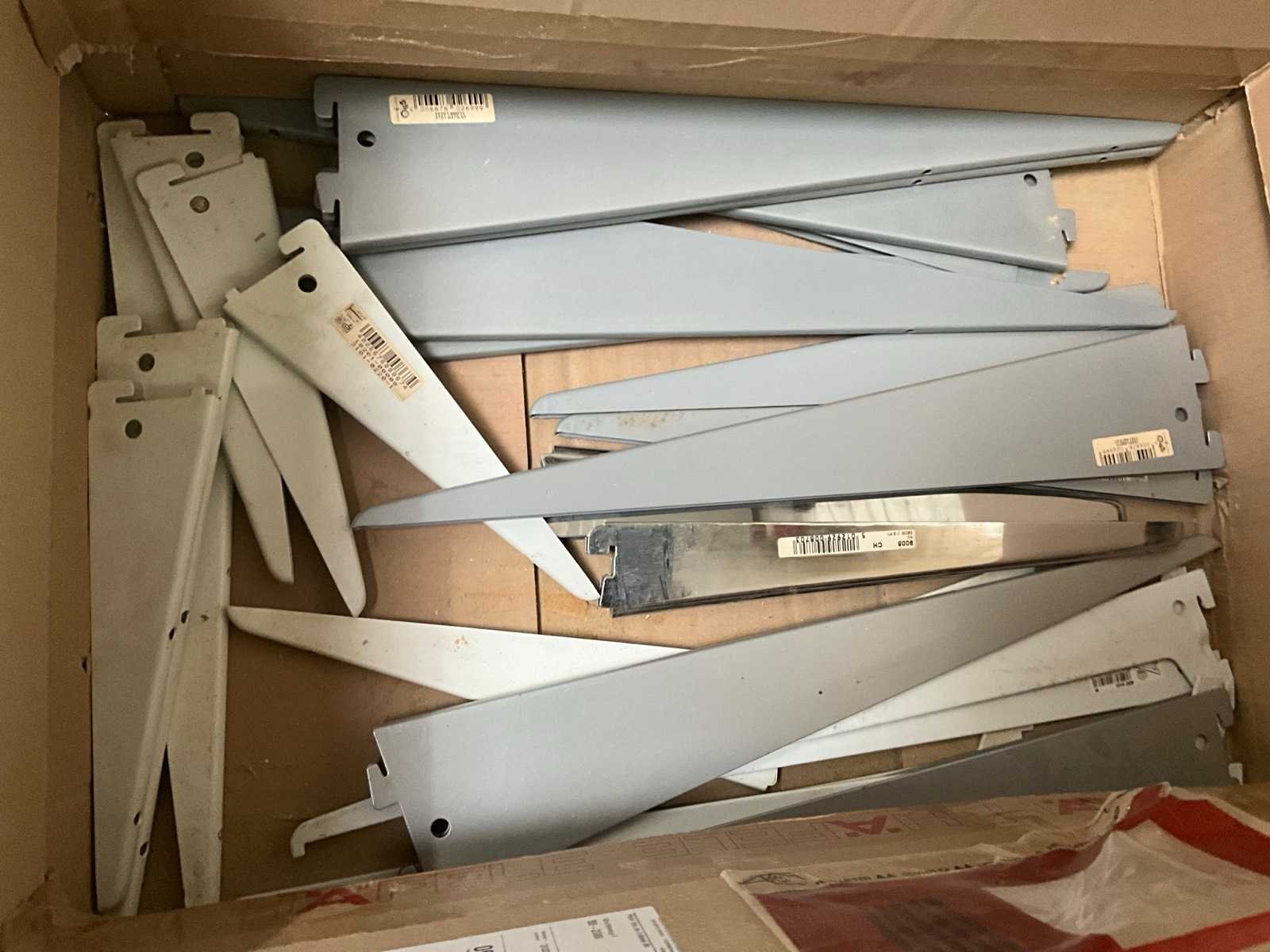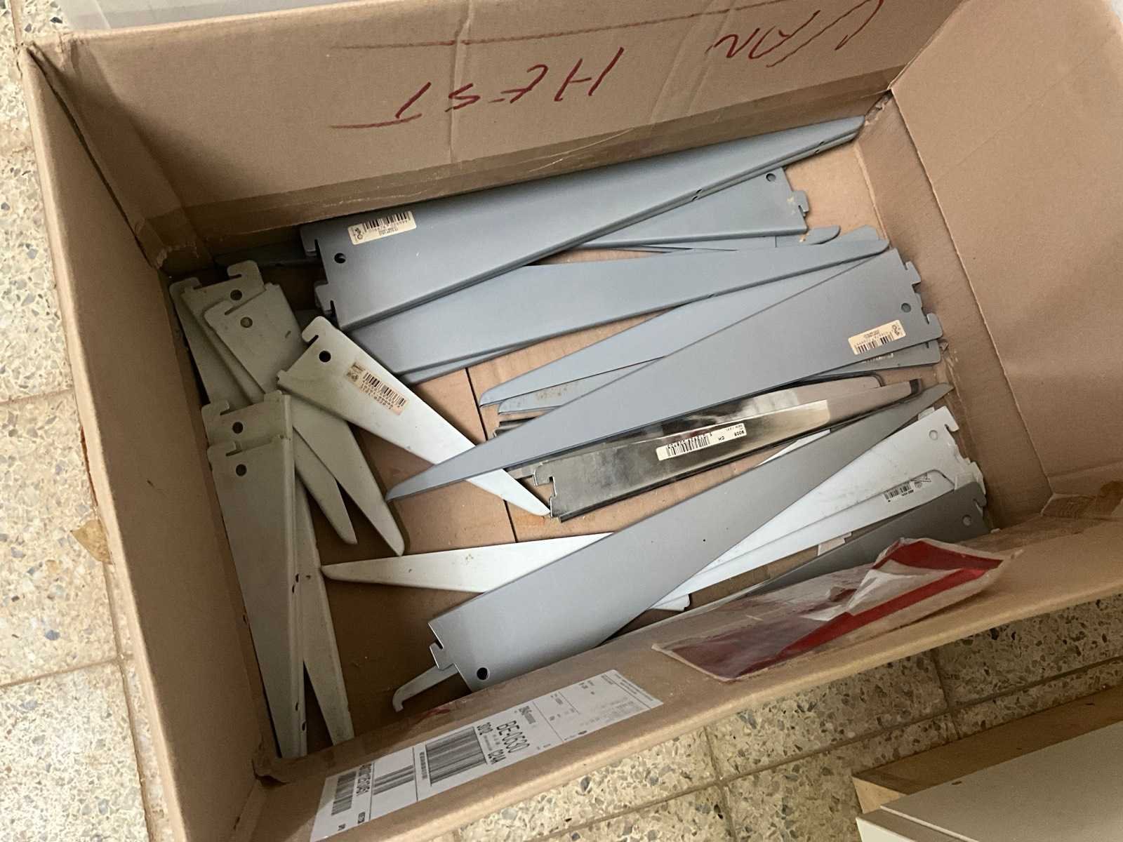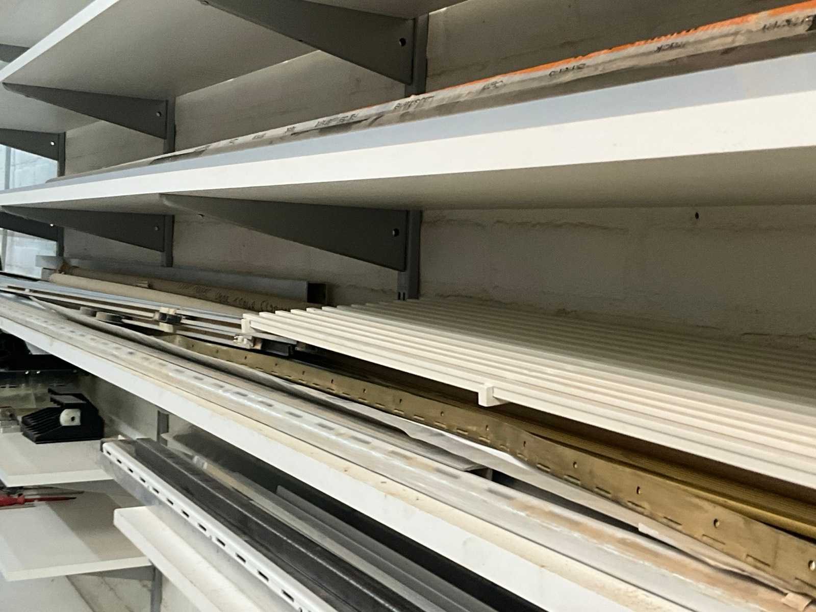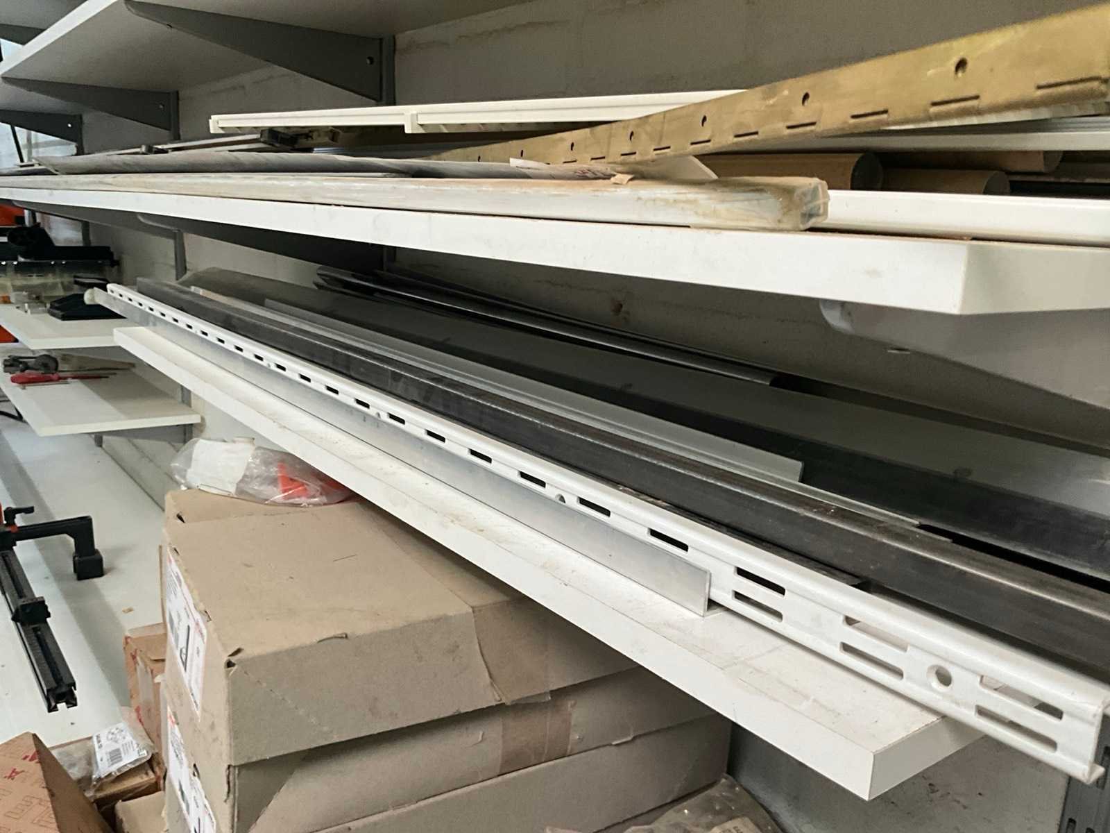 Diverse metalen en alu profielen in verschillende uitvoeringen en lengtes, compleet met enige diverse haken waaronder voorzien van muurwandhouders voor de haken. Nee