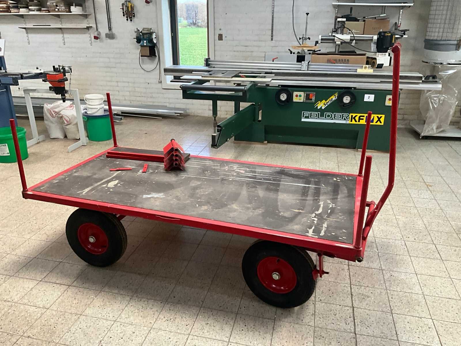 Voorzien van verstelbaar trekhandvat, kar met afmeting 200 x 100 x 48 cm hoog. Inclusief hoeksteunen. Nee
