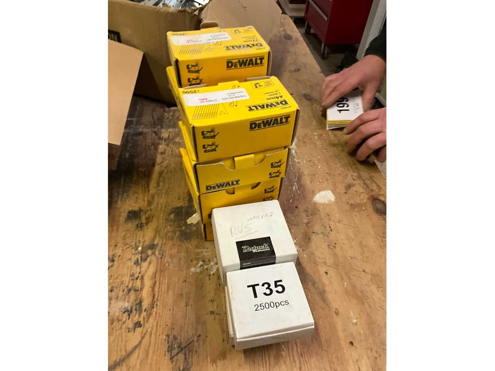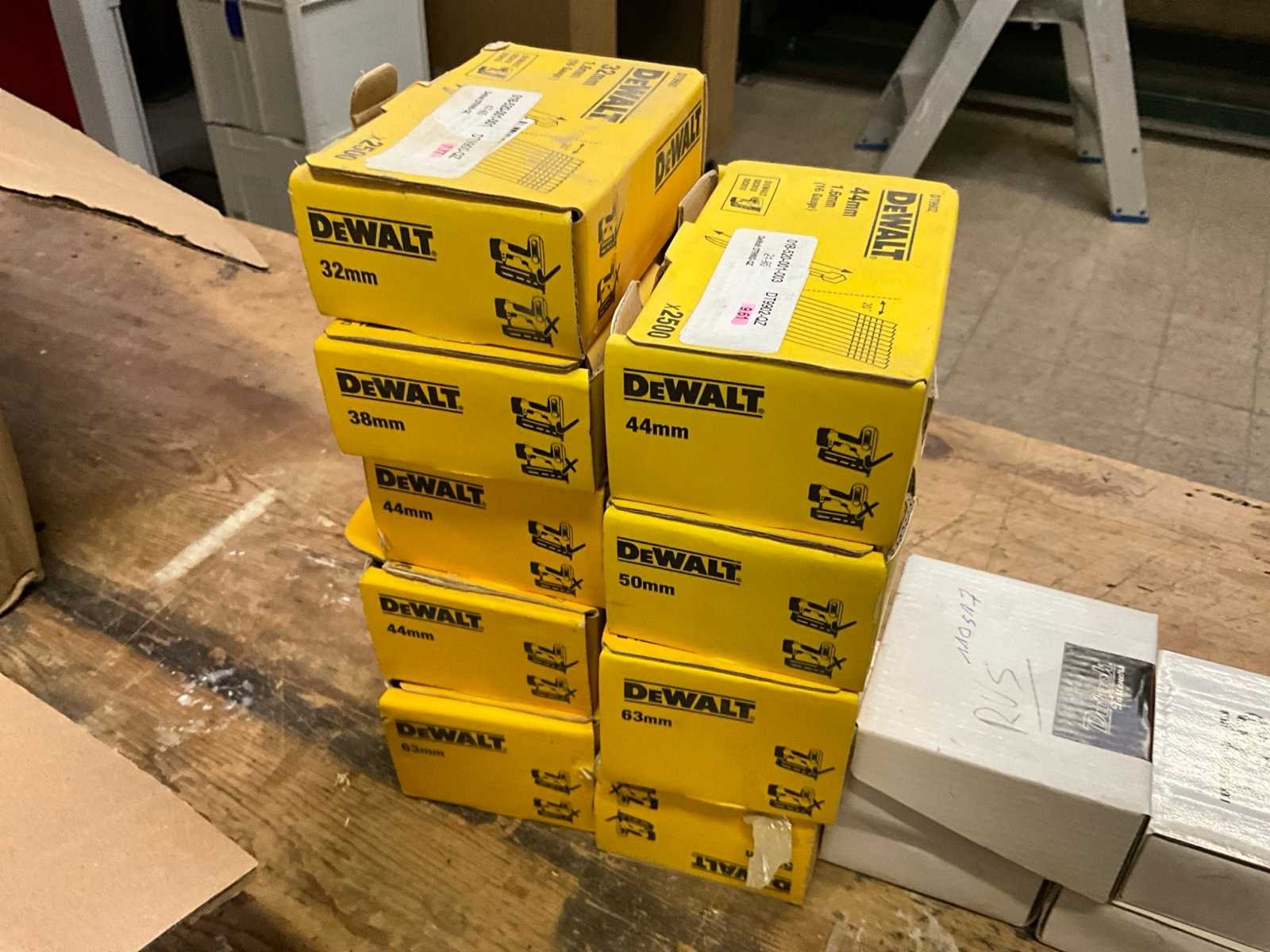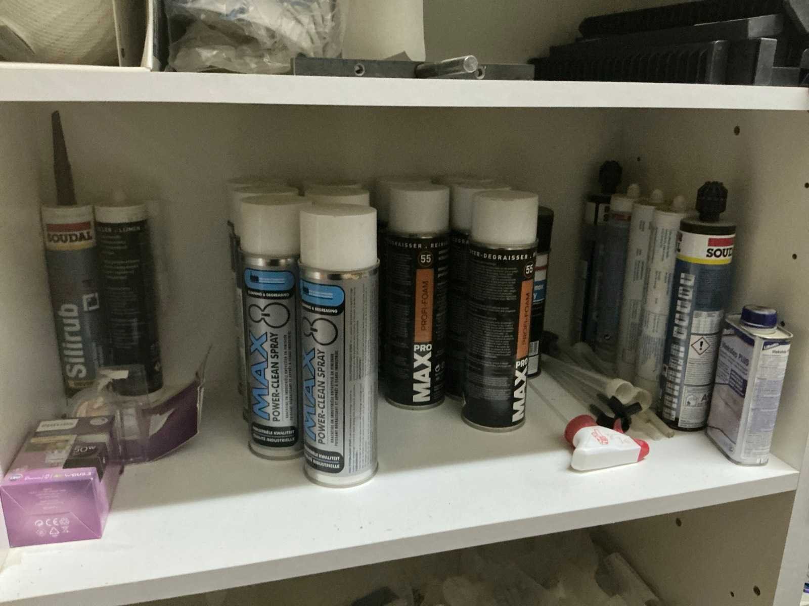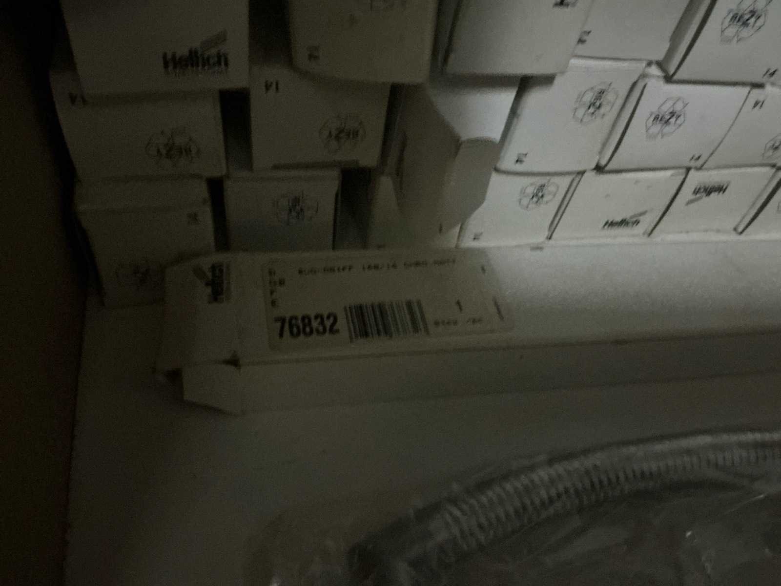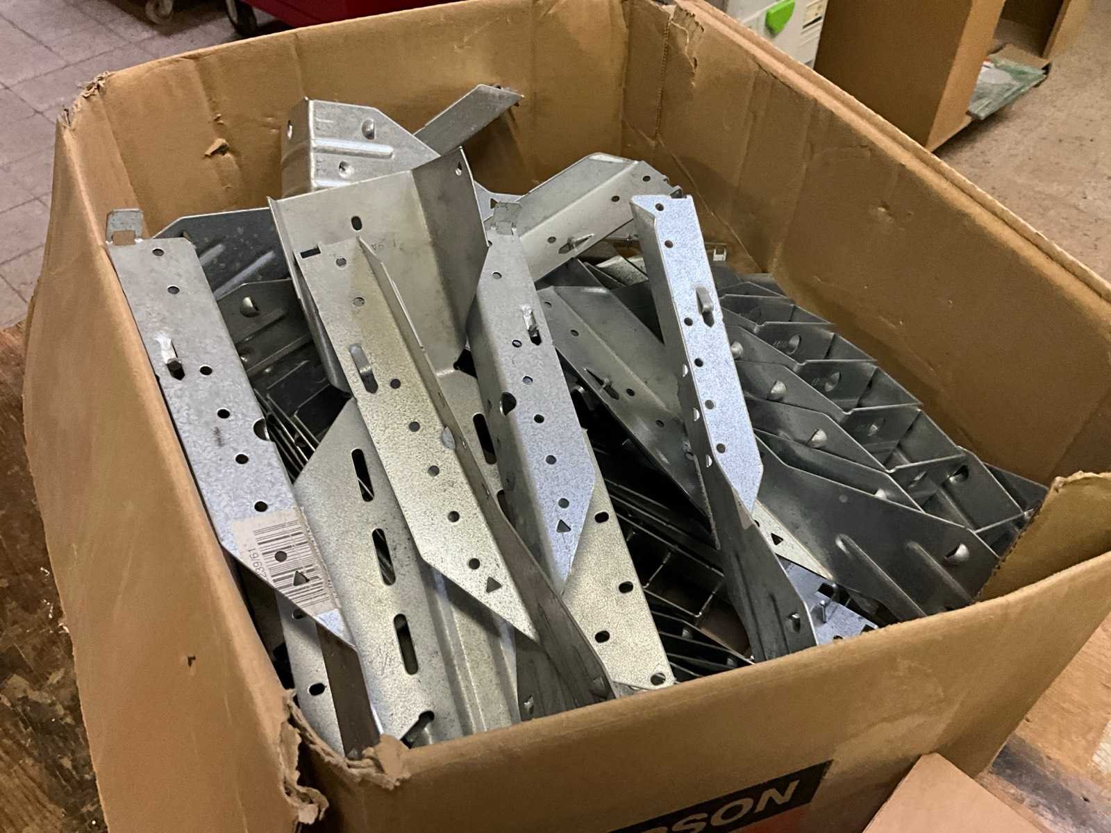 Waaronder Spax, Fischer, Häfele, PGB-fasteners en Mungo, Waaronder bouten, moeren, schroeven, rondellen, slagpluggen, plaketten en verbindingshoeken, scharnieren, handgrepen en ladegeleiders, Liggende in originele doosjes en pvc sorteerbakjes in ca 8 lm divers opbergrek voorzien van 5 niveaus, Zonder opbergrekken, Afgifte volgens aanwijzing. Nee Type: Partij