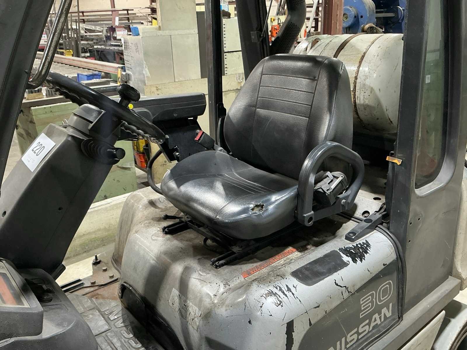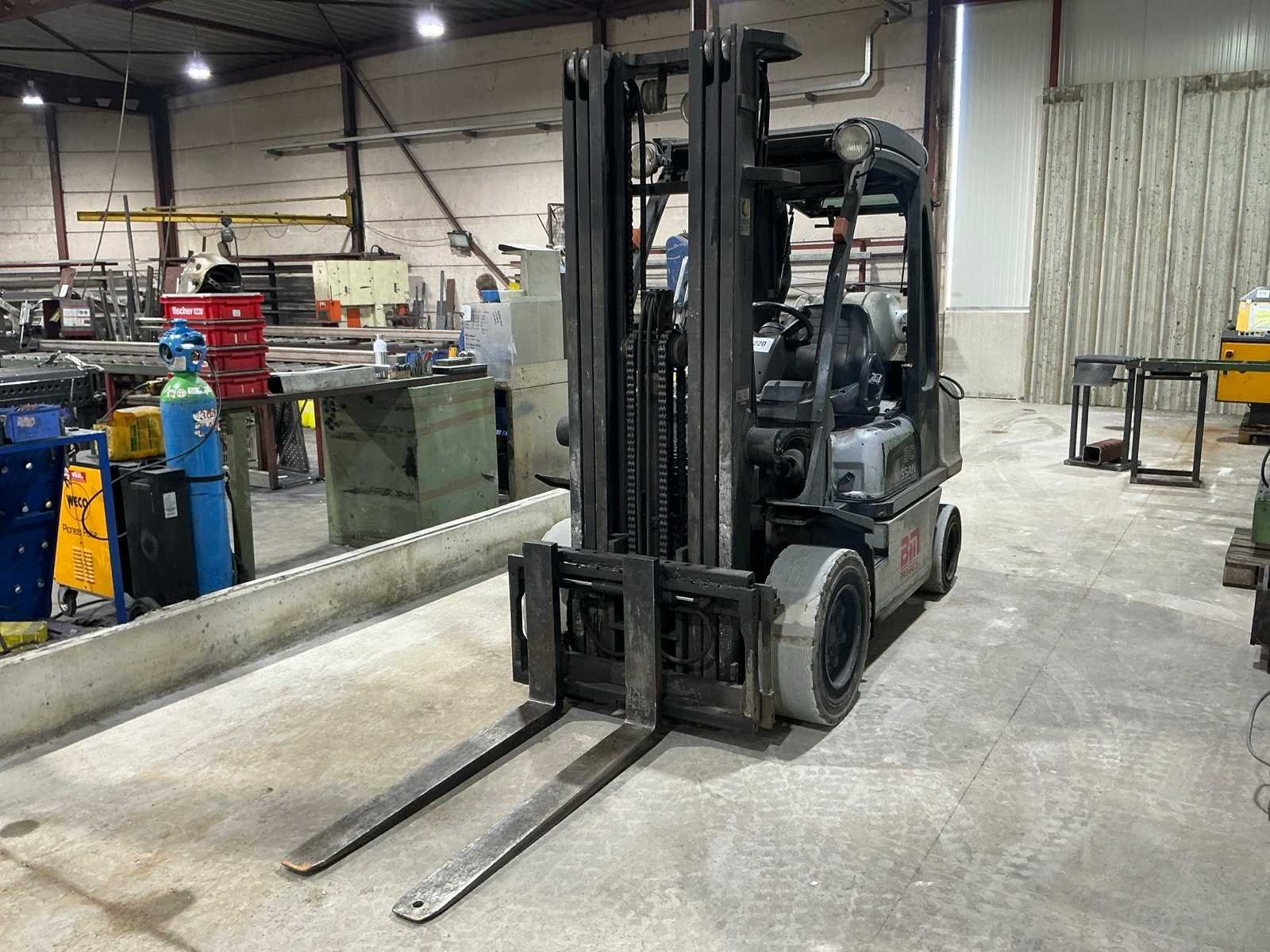 No Merk: Nissan Type: UG1D2A30LQ Brandstof: LPG Mast: Triple Soort band: Volrubber banden Aantal wielen: 4 Afgelezen urenstand: 15439 Side-shift: true Triple mast: true Hefvermogen: 3000kg Lepellengte: 1200mm Max. hefhoogte: 5150mm Vol rubber banden: true Minimale doorrijhoogte: 2400mm LPG: true