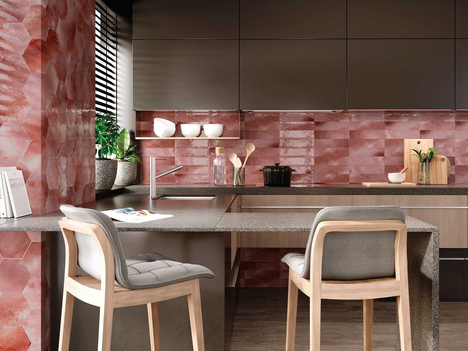 Wandtegels 48m² luna garnet glanzend 7,5x30cm