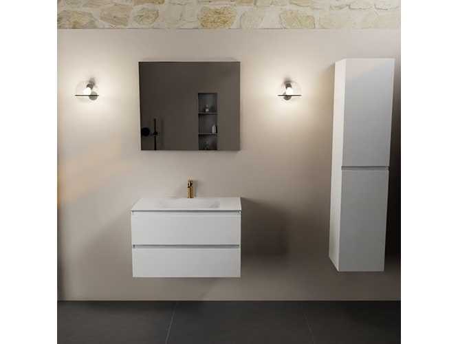 Badkamerkast met massief oppervlak (kunststeen) waswasbakje 80 cm, met kraangat, 2 lades (alleen kast en waskom inbegrepen) No Kleur: Wit Lengte: 80cm Breedte: 45cm Hoogte: 50cm