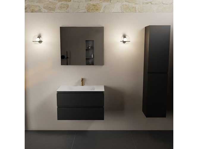 Badkamerkast met massief oppervlak (kunststeen) waswasbakje 80 cm, met kraangat, 2 lades (alleen kast en waskom inbegrepen) No Kleur: Zwart Lengte: 80cm Breedte: 45cm Hoogte: 50cm