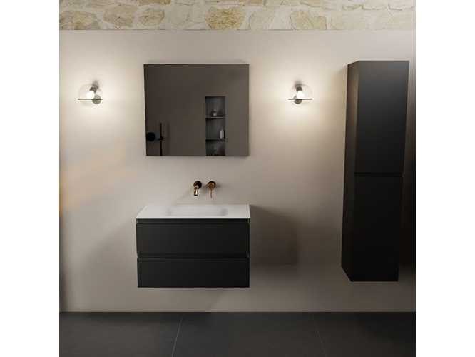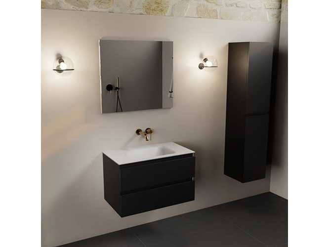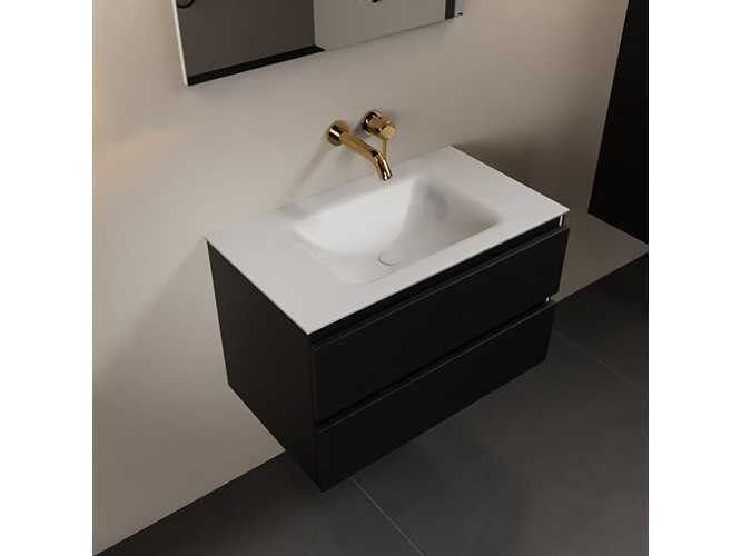 Badkamerkast met een massief oppervlak (kunststeen) wasbakje 80 cm, zonder kraangat, 2 lades (alleen kast en waskom inbegrepen) No Kleur: Zwart Lengte: 80cm Breedte: 45cm Hoogte: 50cm