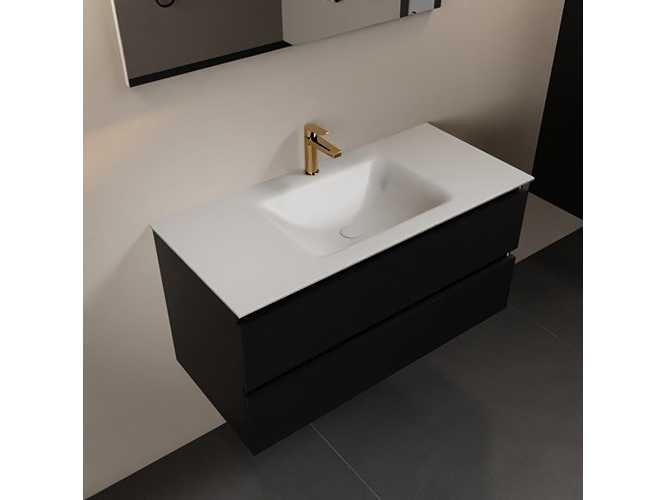 Badkamerkast met massief oppervlak (kunststeen) wasbakje 100 cm, met kraangat, 2 lades (alleen kast en waskom inbegrepen) No Kleur: Zwart Lengte: 100cm Breedte: 45cm Hoogte: 50cm