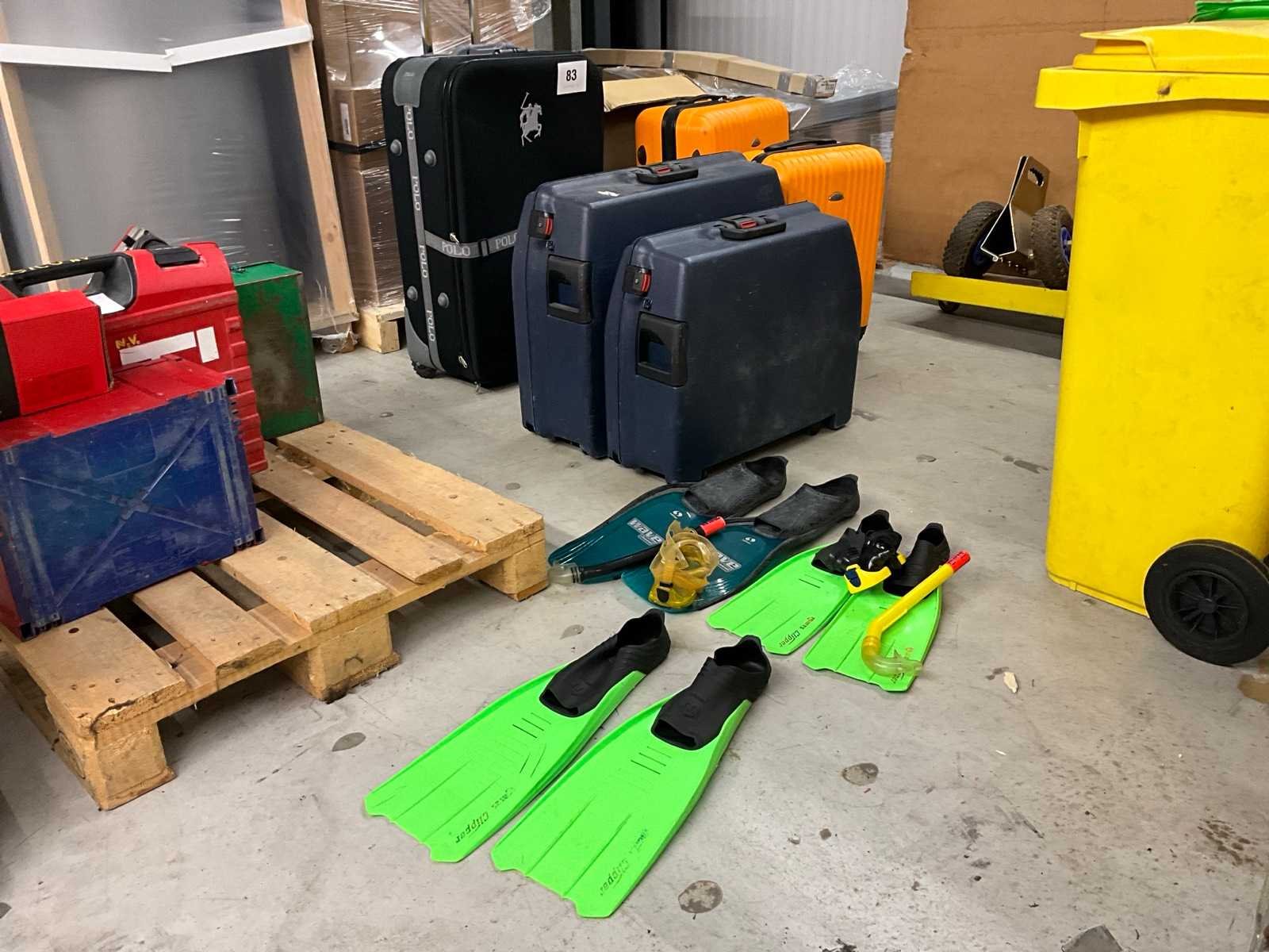 Reiskoffers en zwemvliezen