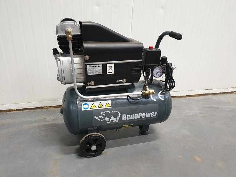 Direct driven; 2 PK; 25 L; 8 bar; monofasig; 230 v; 1 Ph; 50 Hz; motor: elektrisch; ongebruikt No Merk: Renopower Type: DD 2-25-8-M Capaciteit.: 8bar Luchtstroom: 188l/min
