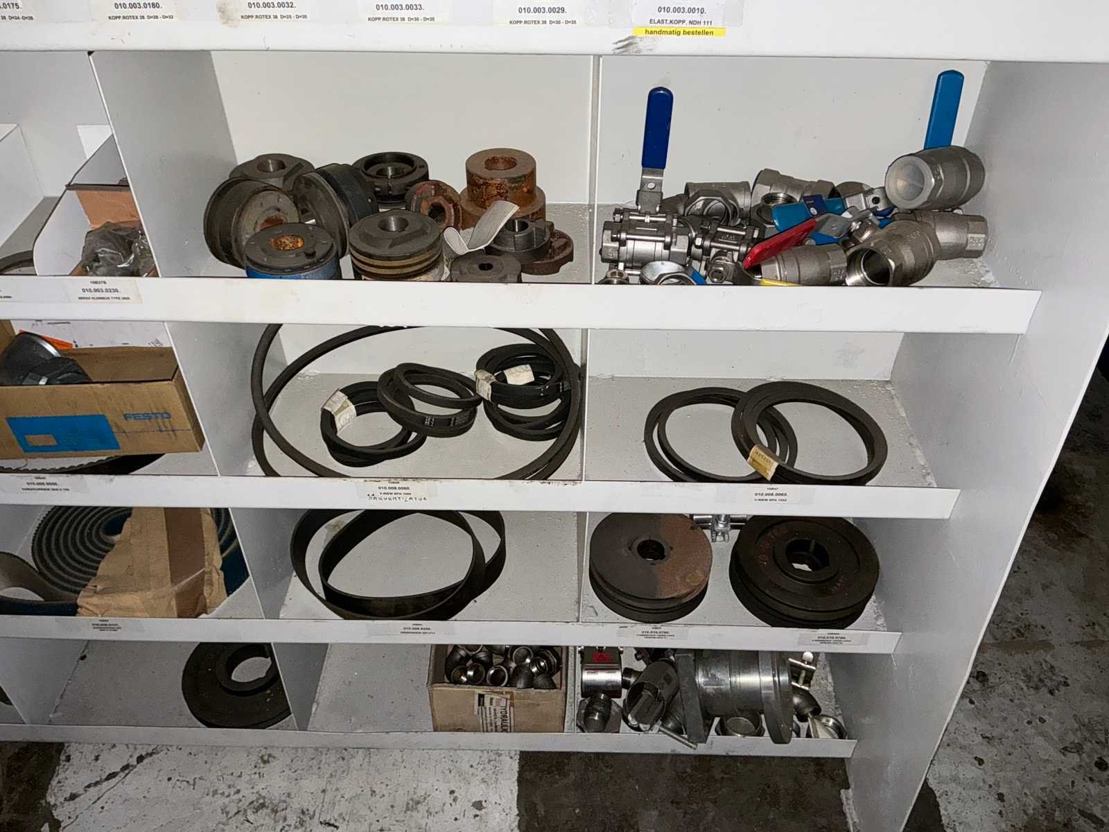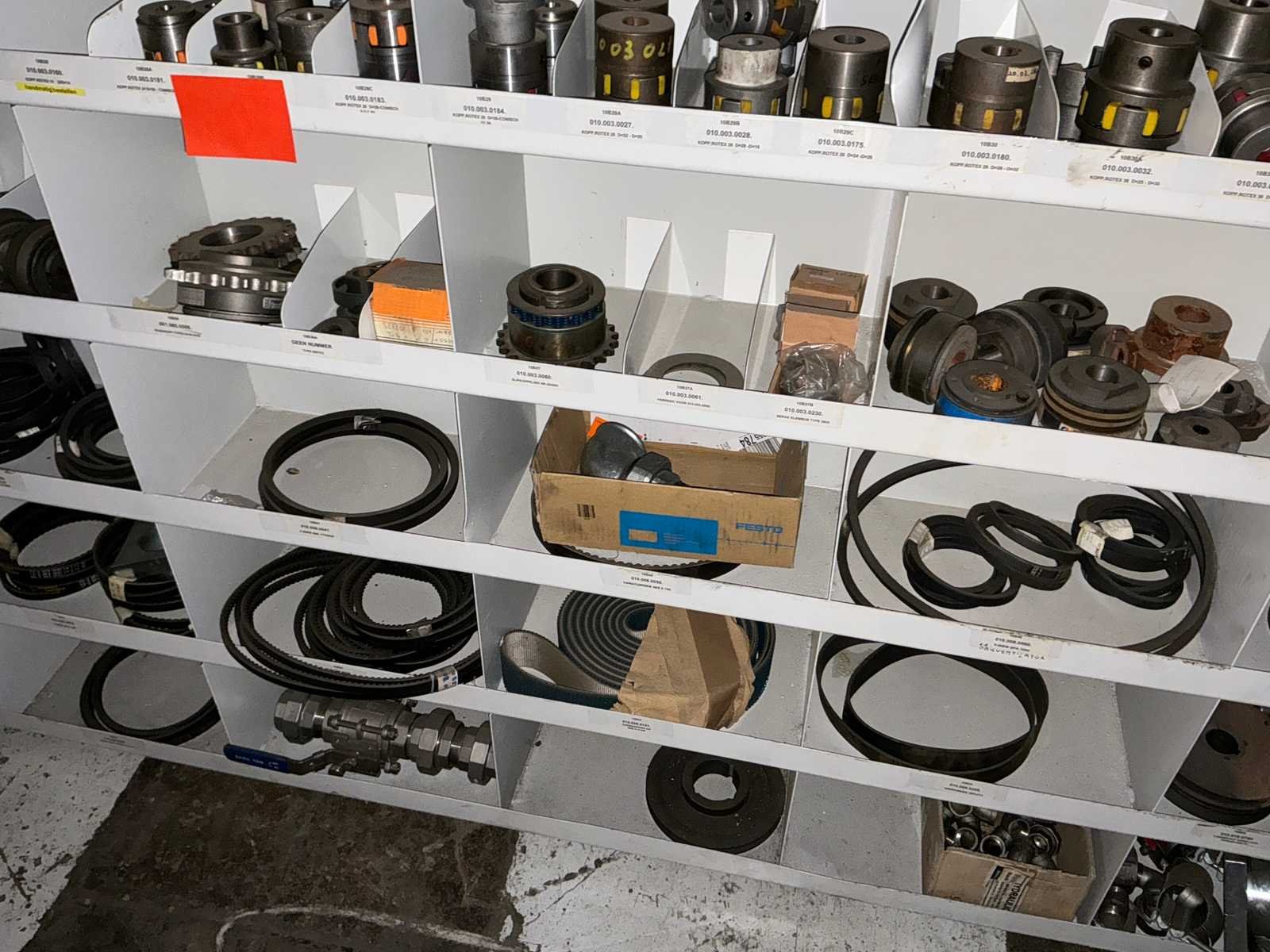Waaronder tandwielen, fitting materiaal, aandrijfriemen, bevestigingsmaterialen, koppelingen, ophangbeugels, afsluiters…. Nee