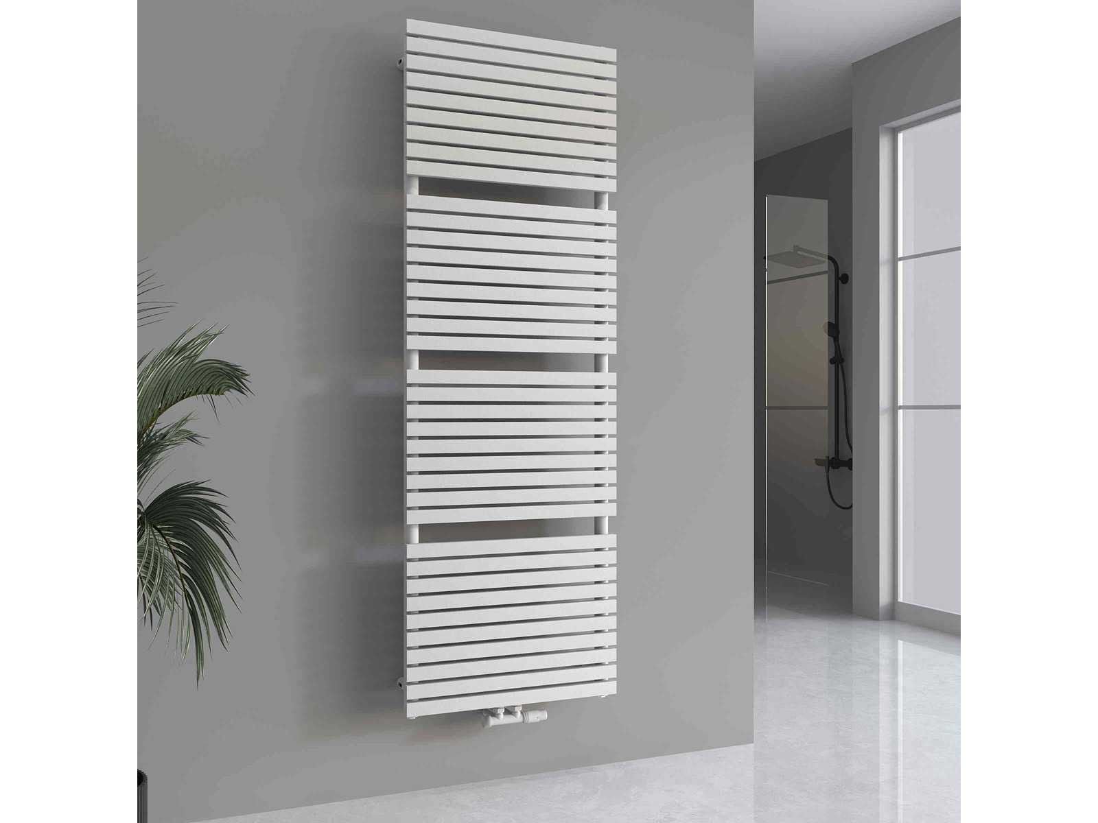 Lavinno Verezzo design handdoekradiator met middenaansluiting - Afm. H1800 x B600 mm - Kleur mat wit - 1887 Watt - Incl. muurbevestiging - Design kraanset niet inbegrepen No Merk: Lavinno Model: Verezzo Wit Kleur: Mat Wit Breedte: 60cm Hoogte: 180cm