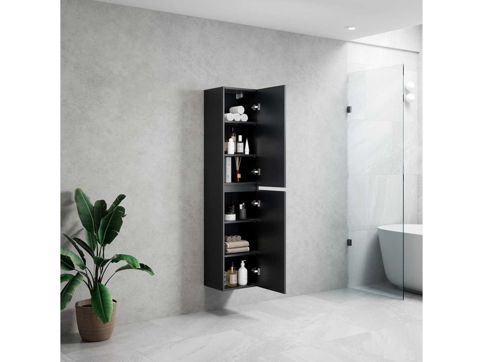 160cm Design Kolomkast Badkamermeubel - Kleur: Zwart Eik - Afm. B40xD30xH160cm - de Kolomkast bevat 2 deuren en is uitgevoerd met een soft close systeem - bevestigingsbeugels incl. No Merk: Lavinno Model: Roma 160-06 Hoogte: 160cm Lengte: 30cm Breedte: 35cm Materiaal: Melamine Kleur: Zwart Eik Softclose: true