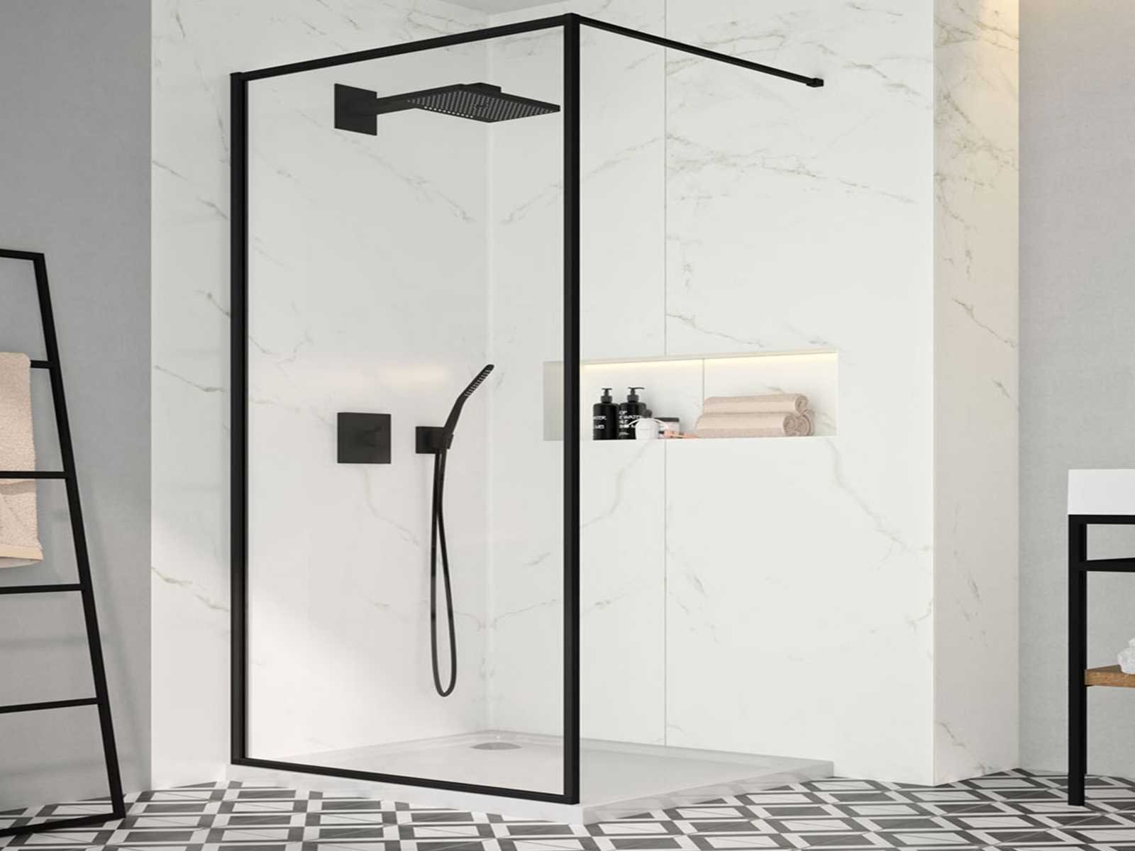 Antikalkbehandeling - NANO-EASY CLEANING GLAS; B 1160 x H 2000 mm - Mat zwart kader profiel breedte 25 mm - Mat zwart muur profiel breedte 30 mm - Veiligheidsglas Glasdikte 8 mm - 100 cm zwart stabilisatiestang inclusief No Merk: Lavinno Model: 120 BCF Hoogte: 200cm Breedte: 120cm