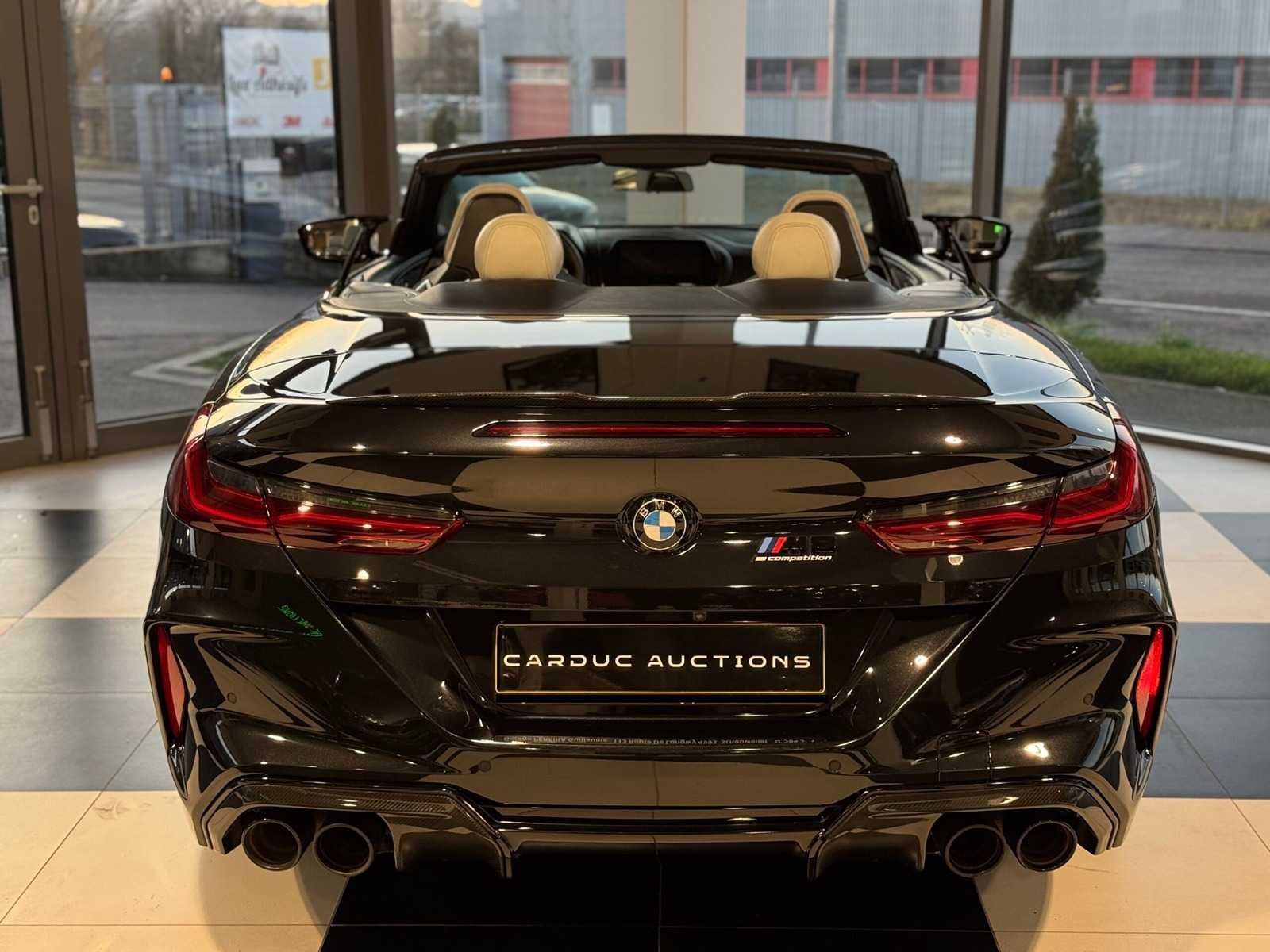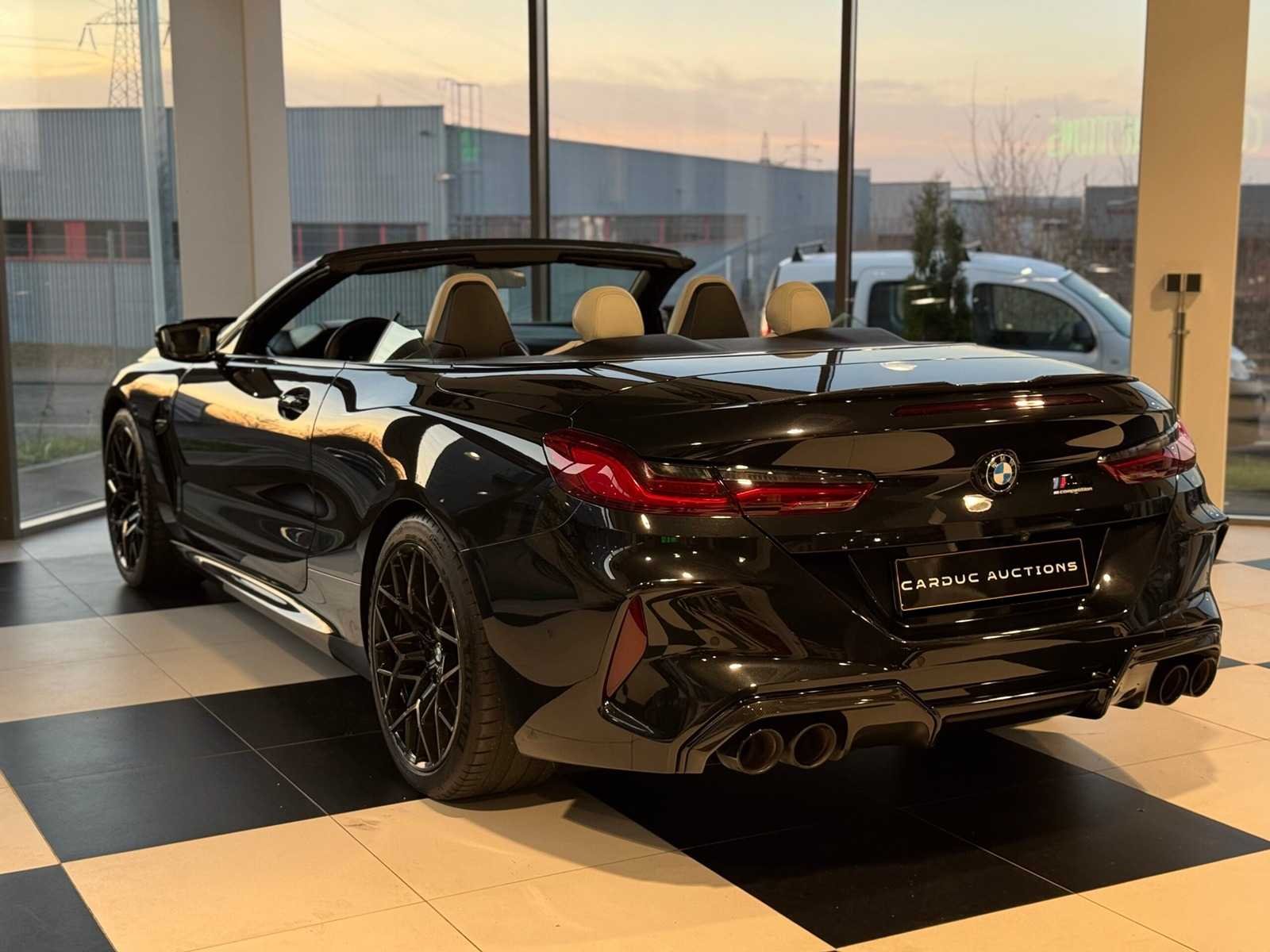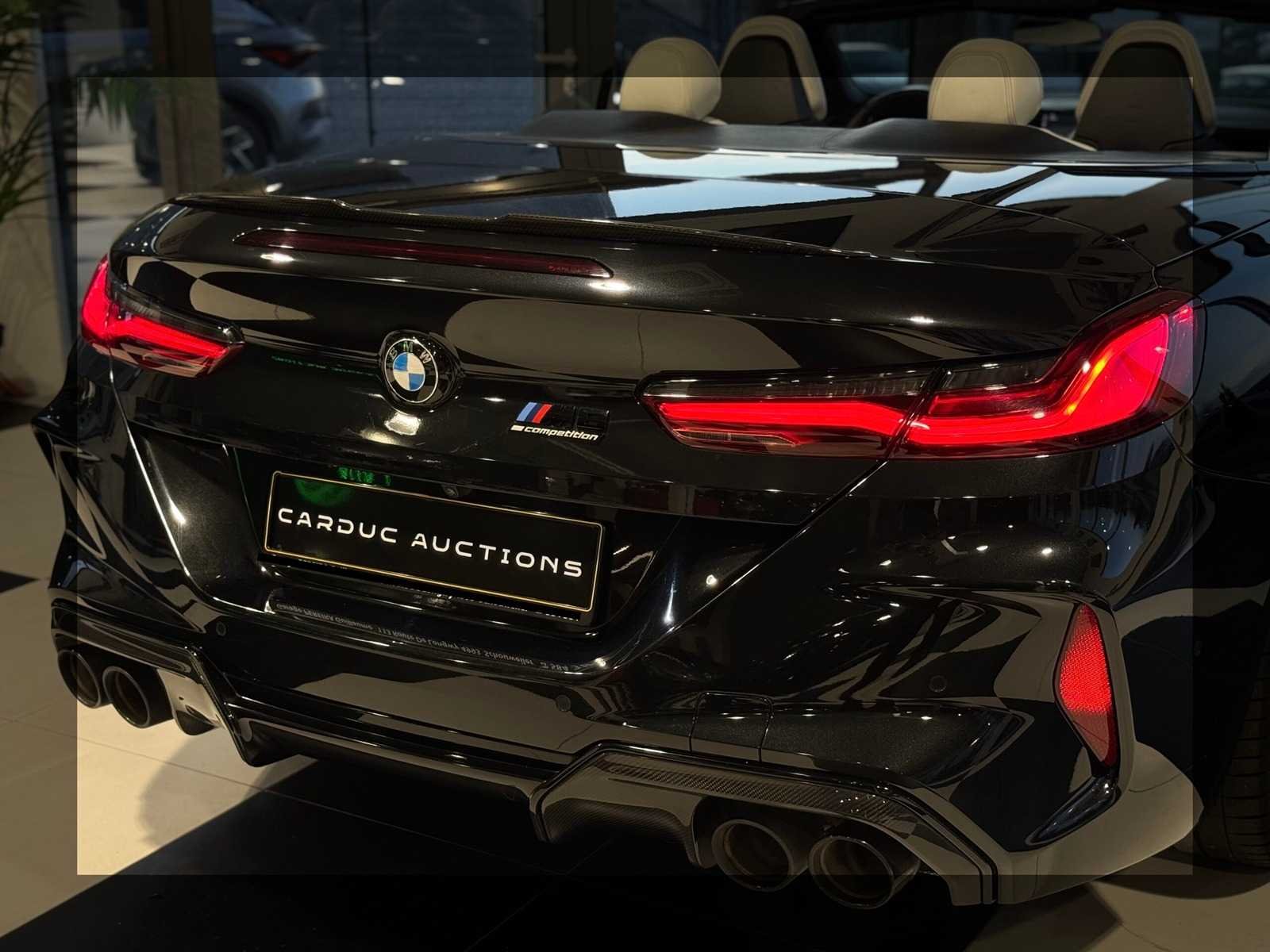 Tweedehands voertuig aangeboden op veiling door Carduc Auctions, een veilinghuis gevestigd in Luxemburg. Net als elk tweedehands voertuig kan het normale tekenen van slijtage vertonen, gerelateerd aan zijn leeftijd, kilometerstand en eerdere gebruik, zowel esthetisch als mechanisch. De informatie in deze mededeling wordt te goeder trouw gecommuniceerd, op basis van de beschikbare informatie. Carduc Auctions voert geen grondige technische inspectie van voertuigen uit. De informatie wordt uitsluitend verstrekt voor informatieve doeleinden, zodat bieders een zo volledig mogelijke beoordeling kunnen uitvoeren. De voertuigen bevinden zich in Luxemburg en kunnen op afspraak worden geraadpleegd, persoonlijk of via videoconferentie, volgens de voorwaarden die voor de verkoop zijn aangegeven. Gedetailleerde informatie over de voertuigen, huidige verkopen en praktische details is beschikbaar op de officiële website: https://carduc-auctions.lu Voor vragen voordat een verkoop wordt afgerond: sales@carduc-auctions.lu Tel: +352 621 595 373 Nee Merk: BMW Model: M8 Compétition Cabrio Bouwjaar: 2020 Afgelezen kilometerstand: 105900km Cilinderinhoud: 4395cc Vermogen (kW): 460kW Brandstof: Benzine Chassisnummer: WBSDZ01080CD38276 Datum eerste toelating: 01-2020 Vermogen (pk): 625hp Aantal zitplaatsen: 4 Kleur: Zwart Transmissie: Automatisch Aantal deuren: 3 Aantal sleutels: 2 Ledig gewicht: 2085kg Velgmaat: 20 Aantal cilinders: 8 Nationaliteit documenten: Luxemburg Onderhoudshistorie: Uitverkocht Gelijkvormigheidsattest aanwezig: waar Start en rijdt: Ja startinformatie : Ja Airconditioning: true Navigatie: true Xenon verlichting: true LED-koplampen: true Leder bekleed: true Luchtvering: true Vierwielaandrijving 4x4: true Inschrijvingsbewijs - deel 1 : Ja Inschrijvingsbewijs - deel 2: Ja