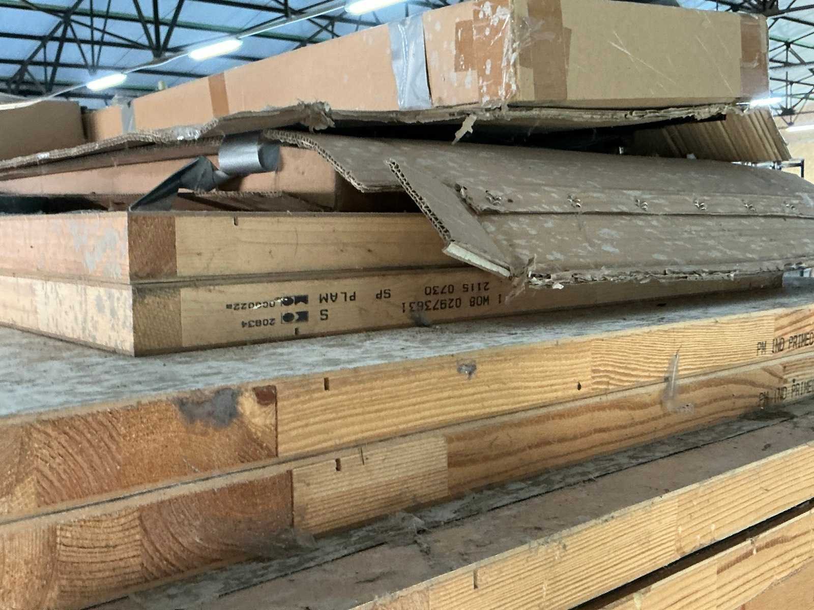 Diverse houten balken, planken en deuren