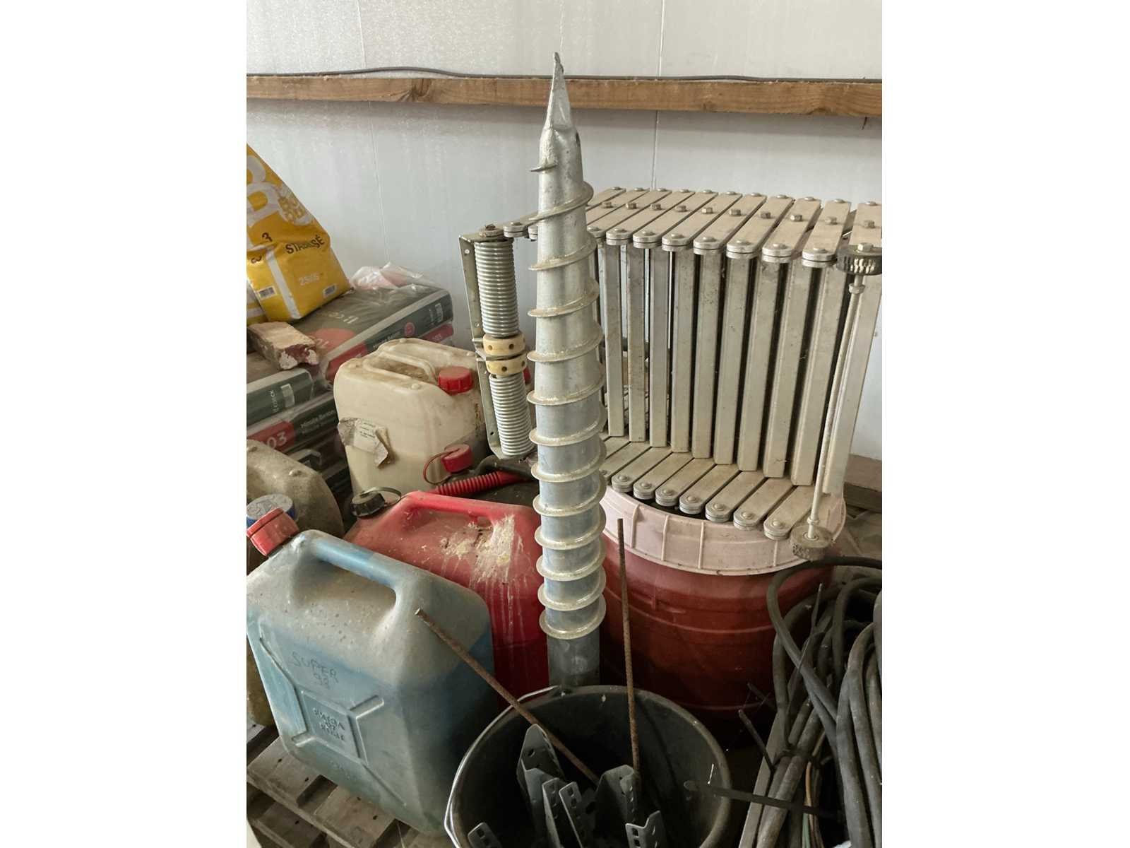 Waaronder 14x schuimisolatie 105x20x10 cm, diverse Ytongblokken, 25 zakken snelbeton Coeck 25KG, enige vloeistoffen in bidons, grondanker, diverse elektriciteitskabels en vouwmechanisme Nee