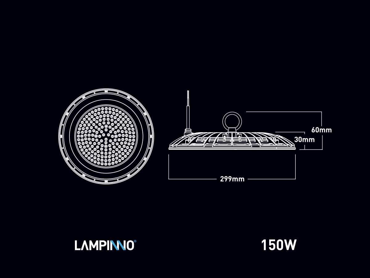 Lichtstroom 15000 lumen SMD LED, met lens, lichtkleur daglicht 6500K, afdichting IP65, Lineaire IC driver inbegrepen, flicker free, stralingshoek 90°, product kleur zand zwart, diam Ø 299 x 30mm, materiaal aluminum en PC lens, bevestigingsset niet inclusief, levensduur 25000 uren, voltage 200-240V, het kan in watt en lumen 5% verschil tonen, sku 1020 No Merk: LAMPINNO Product type: Industrieel Spanning: 200-240V Kleurtemperatuur: 6500KK Lichtbron: LED Wattage: 150W Kleur: Zand Zwart Breedte: 29.9cm Hoogte: 3.0cm Materiaal: Aluminium en PC lens