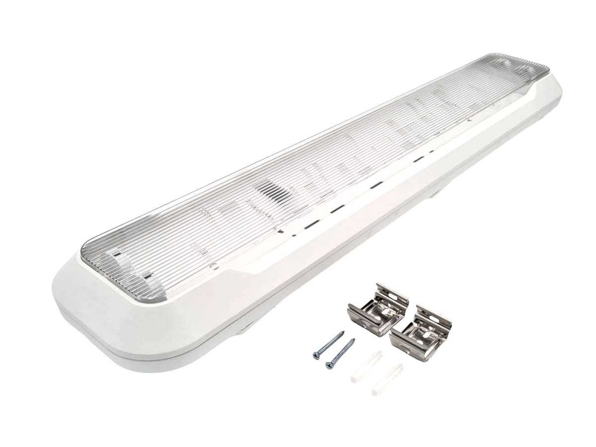 IP65 waterdicht, product kleur wit, afm. 683 x 138 x 84mm, materiaal PC & ijzer reflector, bevestigingsset inclusief, twee T8 Tube invoer, LED TL Tube niet inbegrepen, voltage 220-240V, een zijde L N aansluiting, max 18 watt, compatibel met 60cm TL buizen, SKU 00650 No Merk: LAMPINNO Product type: Industrieel Kleur: Wit Lengte: 68.3cm Breedte: 13.8cm Hoogte: 8.4cm Materiaal: PC en Ijzer