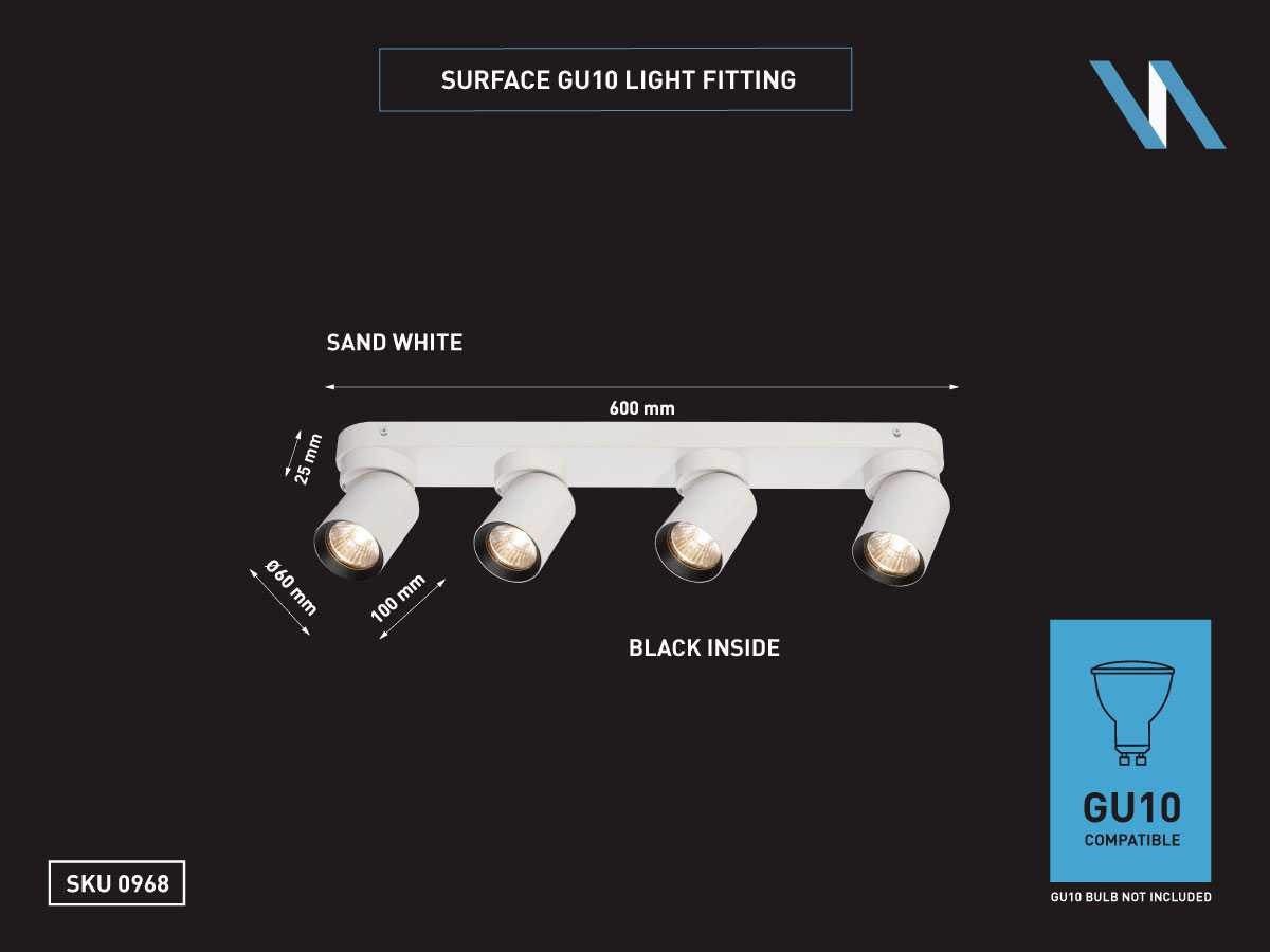 Afdichting IP20, product kleur wit en zwart, afm. Ø 60 x 100mm, afm wandhouder 600 x 60 x 25mm, draaibaar 350° en kantelbaar 50°, materiaal aluminum en ijzer, bevestiging inclusief, fitting GU10, bulb niet inbegrepen, geschikt voor binnen, 4 x bulb invoer, voltage 220-240V, max 40 watt, SKU 00968 No Merk: LAMPINNO Product type: Binnen Verstelbaar: true Fitting: GU10 Kleur: wit en Zwart Lengte: 60.0cm Breedte: 6.0cm Hoogte: 25.0cm Materiaal: Aluminium