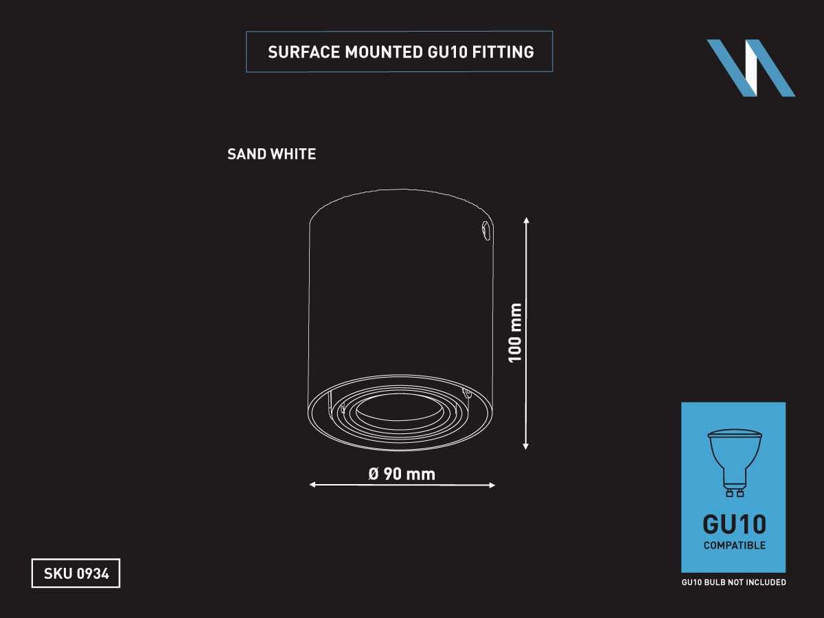 Afdichting IP20, product kleur zand wit, afm. Ø 90 x 100mm, bevestiging inclusief, materiaal aluminium, fitting GU10, bulb niet inbegrepen, geschikt voor binnen, een bulb invoer, voltage 220-240V, SKU 00934 No Merk: LAMPINNO Product type: Binnen Verstelbaar: true Fitting: GU10 Kleur: Wit Lengte: 10.0cm Breedte: 9.0cm Materiaal: Aluminium