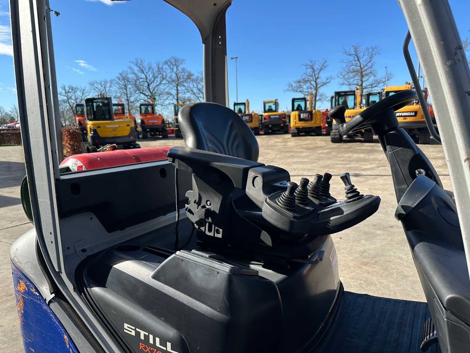 -Sideshift. -Start niet na te zien. -Geen documenten. Nee Merk: Still Type: RX70-16T Bouwjaar: 2018 Serienummer: 517314J00072 Brandstof: LPG Mast: Duplex Soort band: Vol Aantal wielen: 4 Afgelezen urenstand: 18261 Side-shift: true Duplex mast: true Eigen gewicht: 3125kg Hefvermogen: 1600kg Lepellengte: 1100mm Max. hefhoogte: 4400mm Vol rubber banden: true Totale afmeting L: 2100mm Totale afmeting Breedte: 1100mm Totale afmeting Hoogte: 2200mm LPG: true