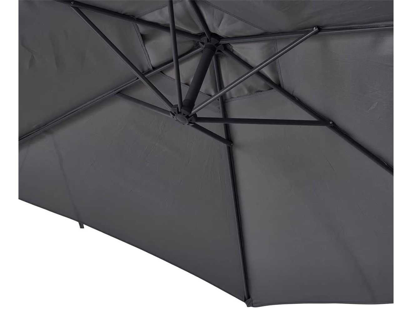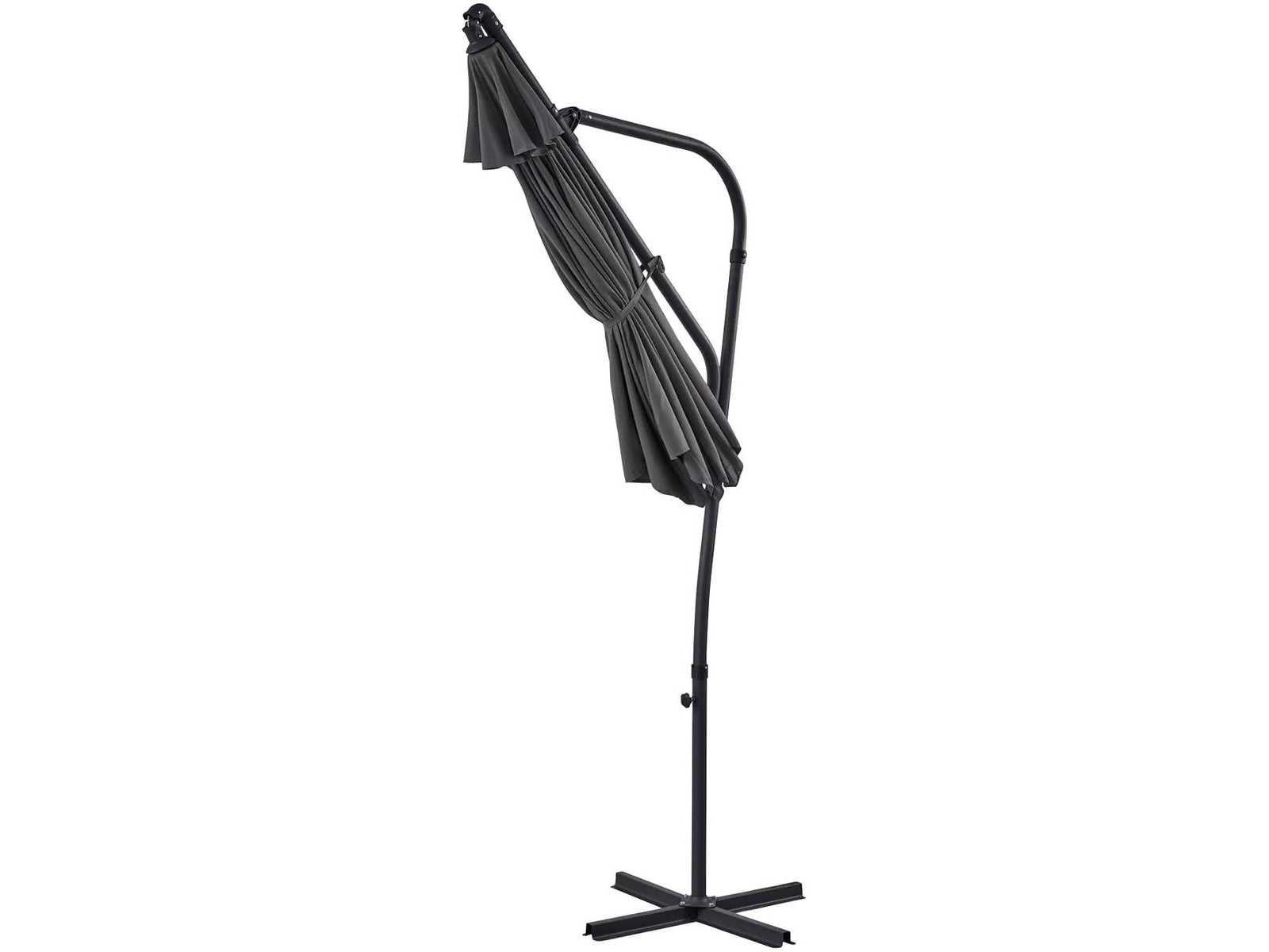 Zwevende parasol met draaibaar handvat en push-up systeem: makkelijk te openen en te kantelen Modern aluminium frame Grijs polyester stof met UV30+ bescherming Non