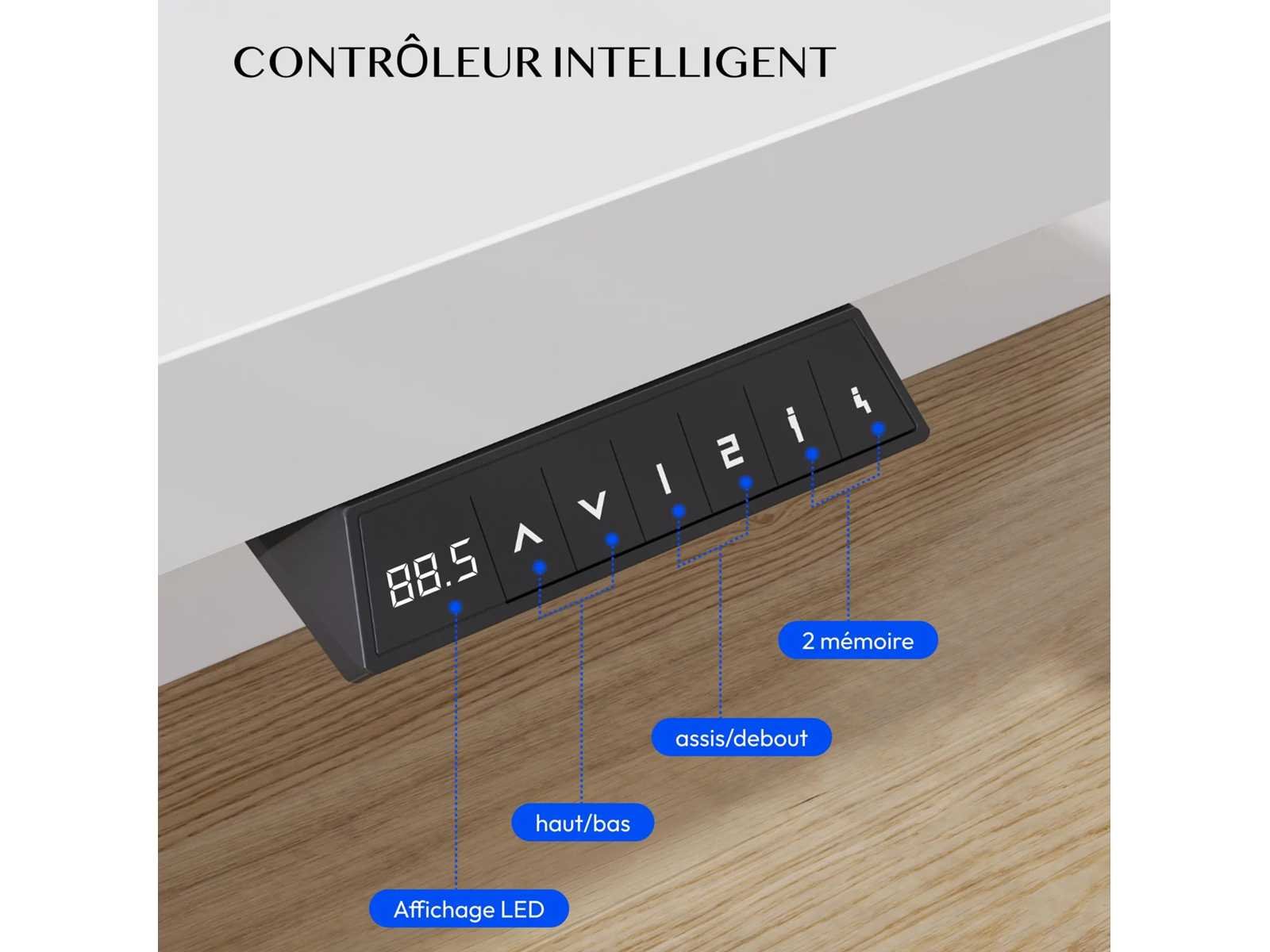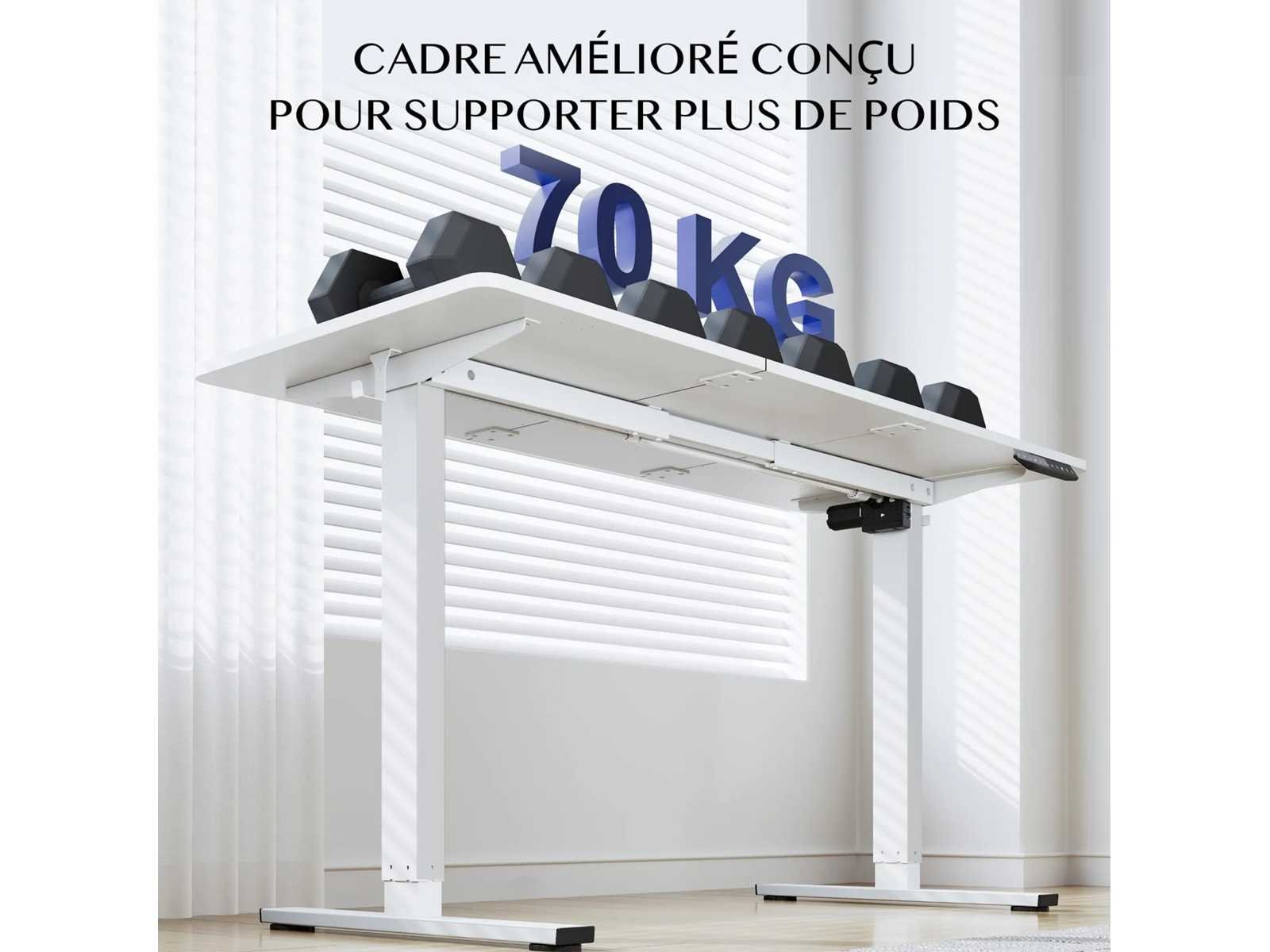Onze voordelen: Oneindig verstelbare hoogte - Ideaal om van zittend naar staan te gaan Draagvermogen tot 70 kg - Stabiel stalen frame voor dagelijks laden Stille motorwerking - Minder dan 50 dB om ongestoord te werken Zijbekerhouder - Drankjes altijd bij de hand Handige haken - voor koptelefoons, tassen of rugzakken Geïntegreerd kabelbeheer - voor een opgeruimd werkstation Opbergruimte onder de tafel - Meer ruimte op het tafelblad Afgeronde hoeken - Meer veiligheid voor kinderen en huisdieren Groot hoogteverstelbereik Met een verstelhoogte van 73,5 tot 118 cm past de tafel zich flexibel aan – perfect voor kinderen die studeren of volwassenen die in een thuiskantoor werken, zittend of staand. Robuuste constructie Het stevige stalen frame ondersteunt tot 70 kg - genoeg voor meerdere schermen, boeken of technische apparatuur. Een solide metgezel voor productieve dagen, zonder enige wankelingen. Productdetails: Lengtebereik: 73,5 cm - 118 cm Maximale laadcapaciteit: 70 kg Ruisniveau: = 50 dB Randontwerp: Afgerond en kinderbestendig Kabelbeheer: Geïntegreerd met beugels en opslag Accessoires: Bekerhouder en helmhaak inbegrepen Non