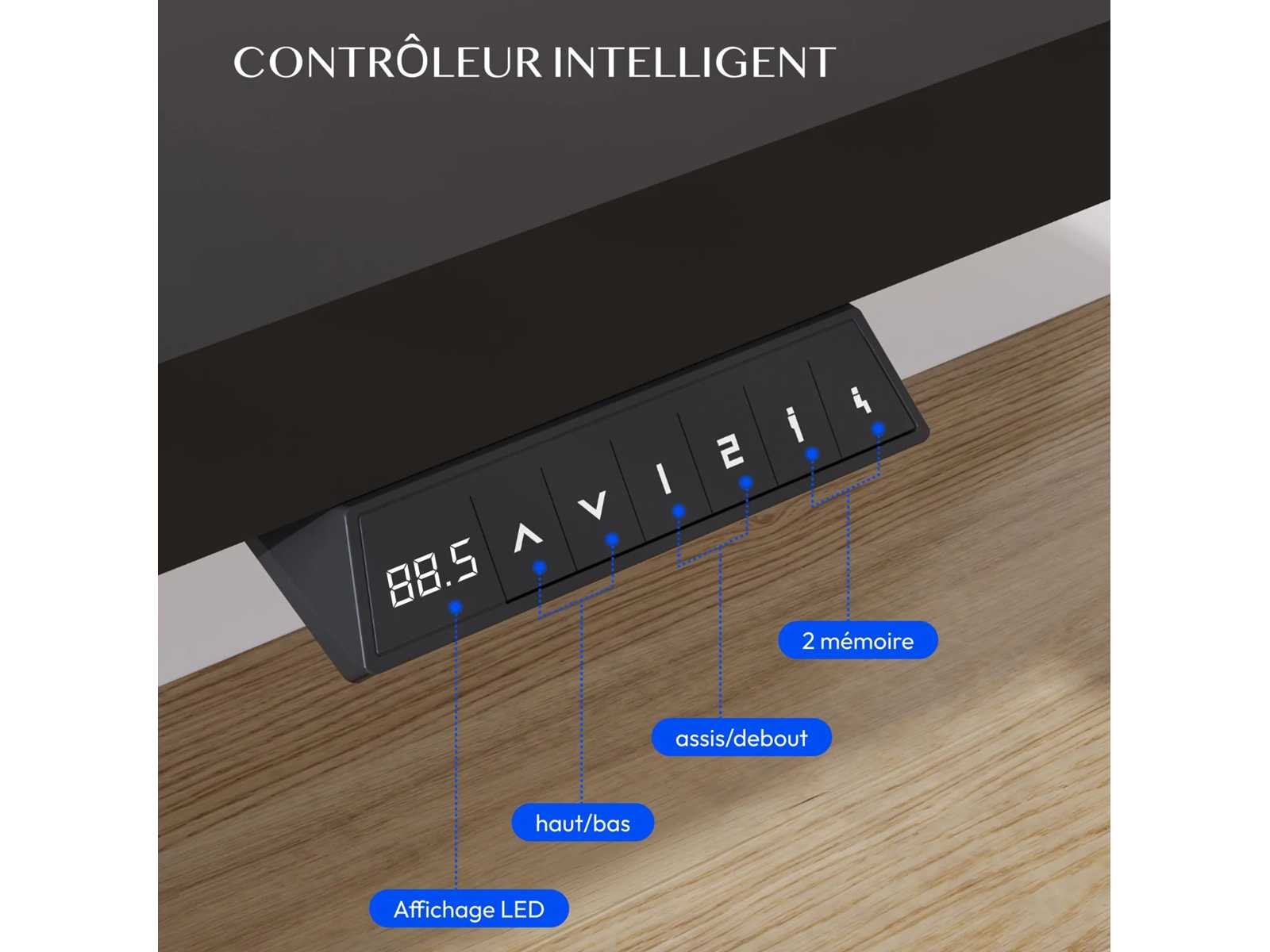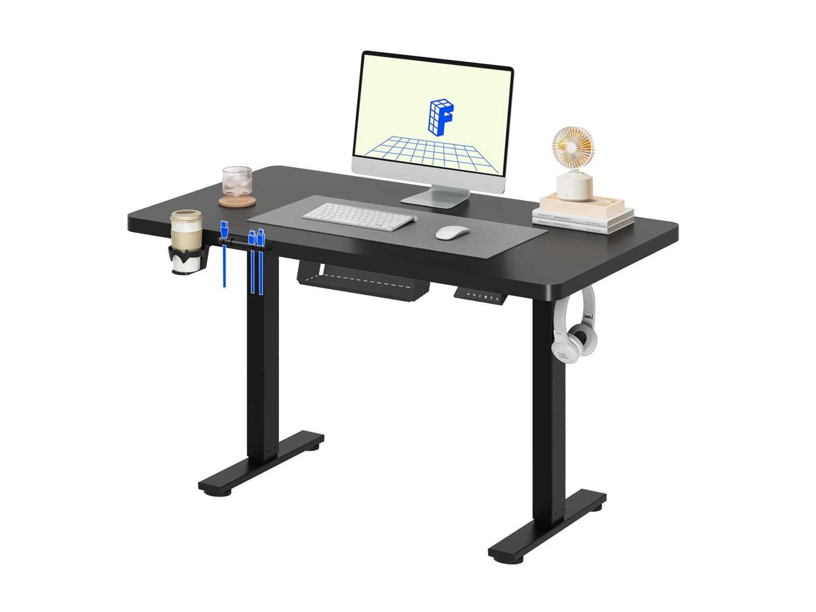 Onze voordelen: Oneindig verstelbare hoogte - Ideaal om van zittend naar staan te gaan Draagvermogen tot 70 kg - Stabiel stalen frame voor dagelijks laden Stille motorwerking - Minder dan 50 dB om ongestoord te werken Zijbekerhouder - Drankjes altijd bij de hand Handige haken - voor koptelefoons, tassen of rugzakken Geïntegreerd kabelbeheer - voor een opgeruimd werkstation Opbergruimte onder de tafel - Meer ruimte op het tafelblad Afgeronde hoeken - Meer veiligheid voor kinderen en huisdieren Groot hoogteverstelbereik Met een verstelhoogte van 73,5 tot 118 cm past de tafel zich flexibel aan – perfect voor kinderen die studeren of volwassenen die in een thuiskantoor werken, zittend of staand. Robuuste constructie Het stevige stalen frame ondersteunt tot 70 kg - genoeg voor meerdere schermen, boeken of technische apparatuur. Een solide metgezel voor productieve dagen, zonder enige wankelingen. Productdetails: Lengtebereik: 73,5 cm - 118 cm Maximale laadcapaciteit: 70 kg Ruisniveau: = 50 dB Randontwerp: Afgerond en kinderbestendig Kabelbeheer: Geïntegreerd met beugels en opslag Accessoires: Bekerhouder en helmhaak inbegrepen Non
