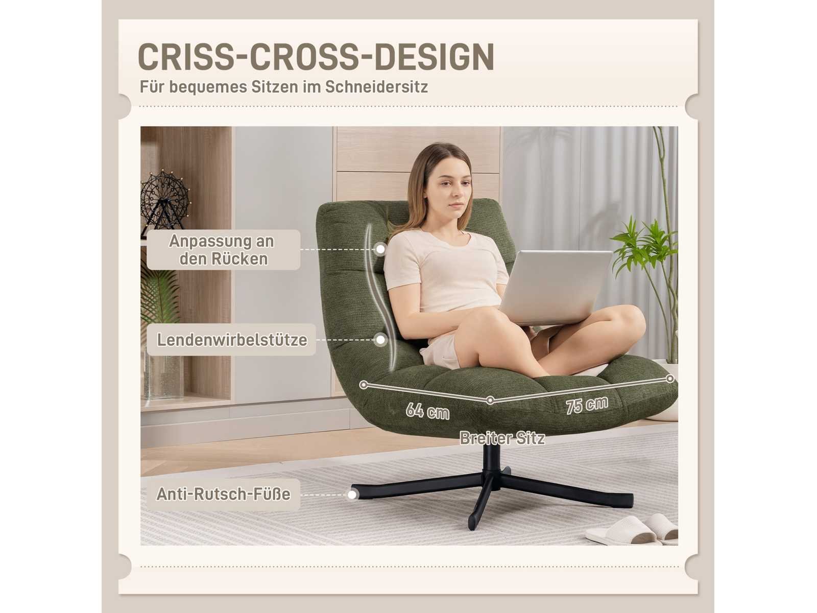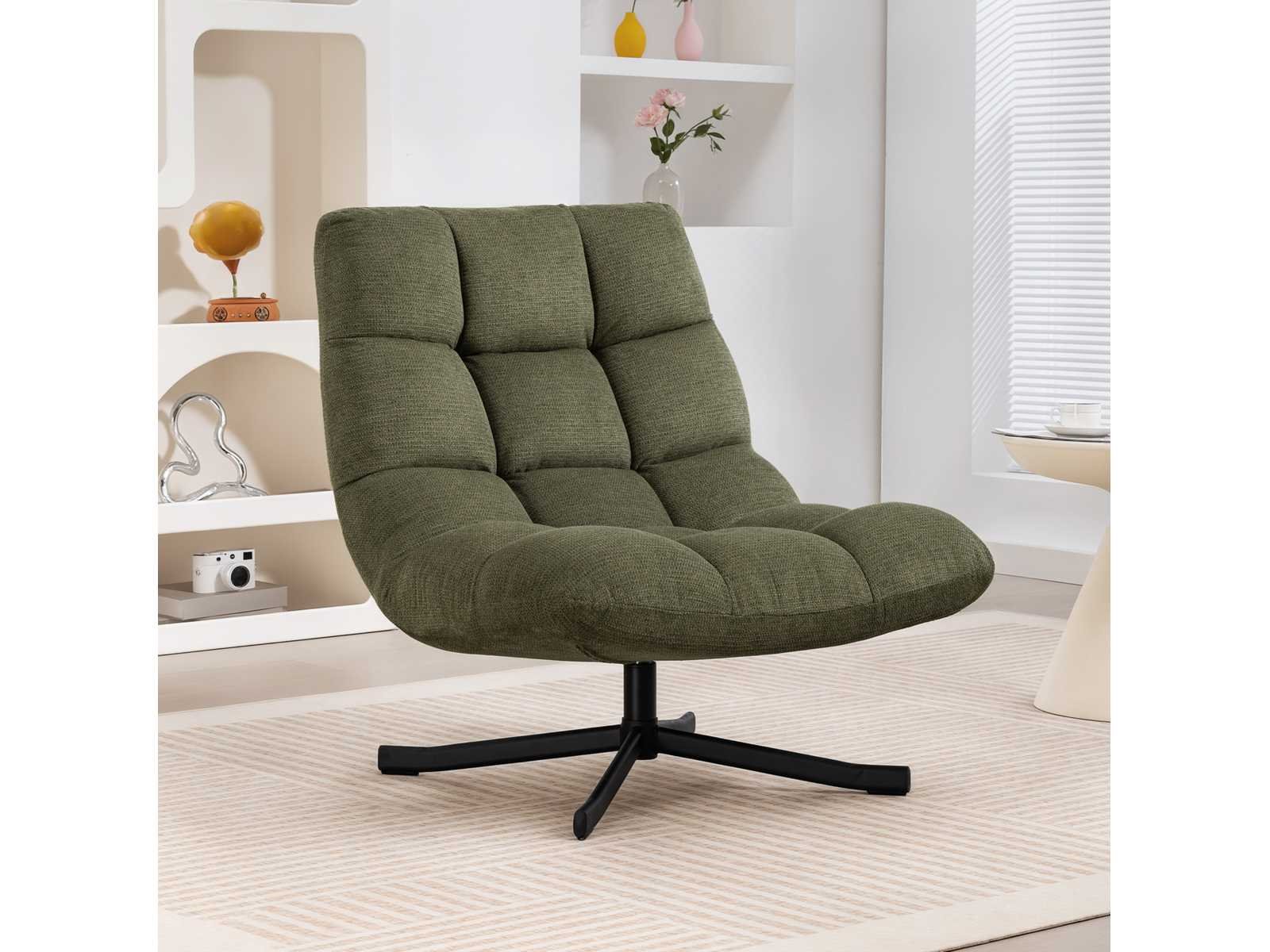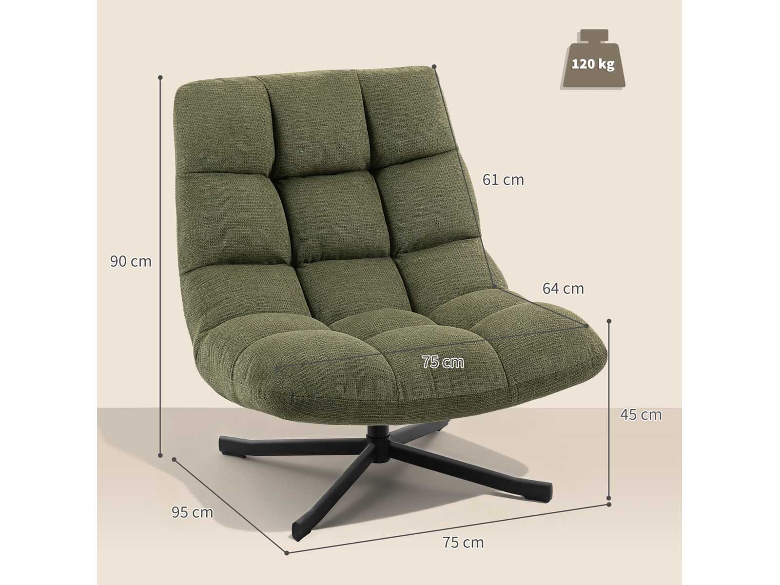 Technische specificaties: ? Kleur: Groen ? Materialen: Chenille (100% polyester), staal, schuim, PP katoenen vulling ? Totale afmetingen: 75 cm (W) x 95 cm (D) x 90 cm (H) ? Zitafmetingen: 75 cm (breedte) x 46 cm (dikte) x 45 cm (hoogte) ? Afmetingen rugsteun: 61 cm (L) x 75 cm (W) ? Dikte van de zit-/rugleuning: 17 cm ? Laadvermogen: 120 kg Non