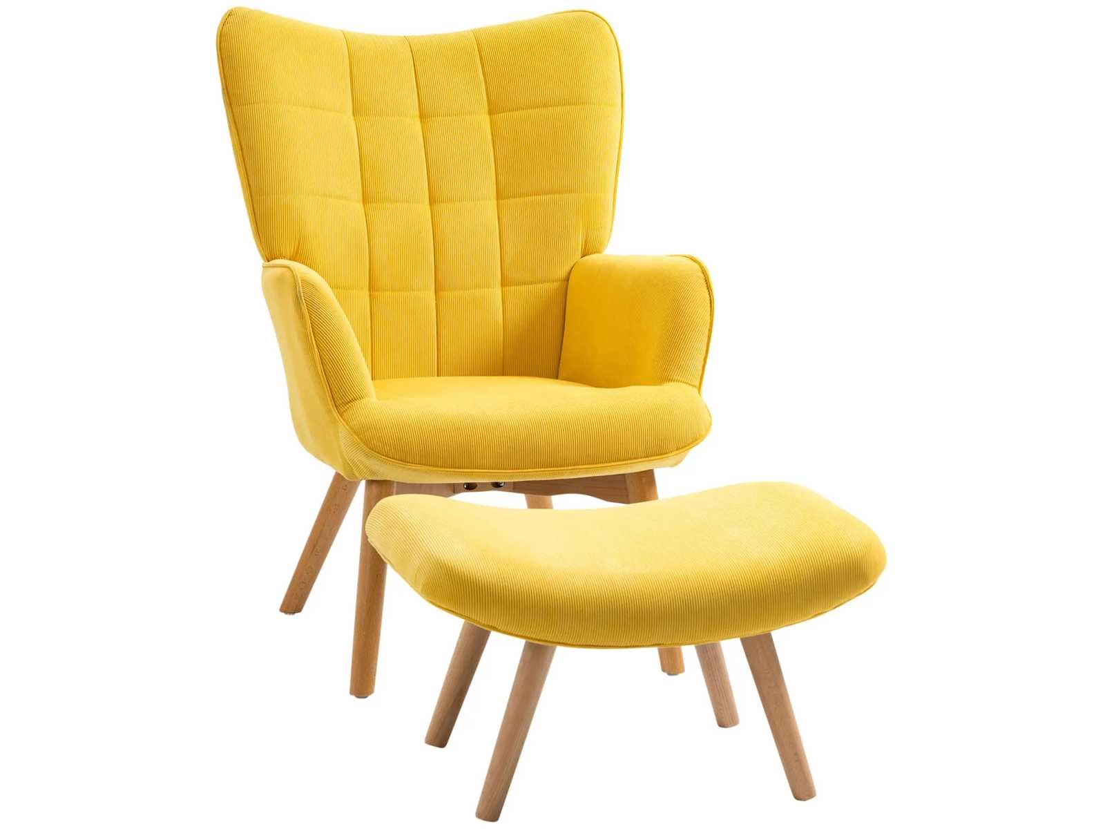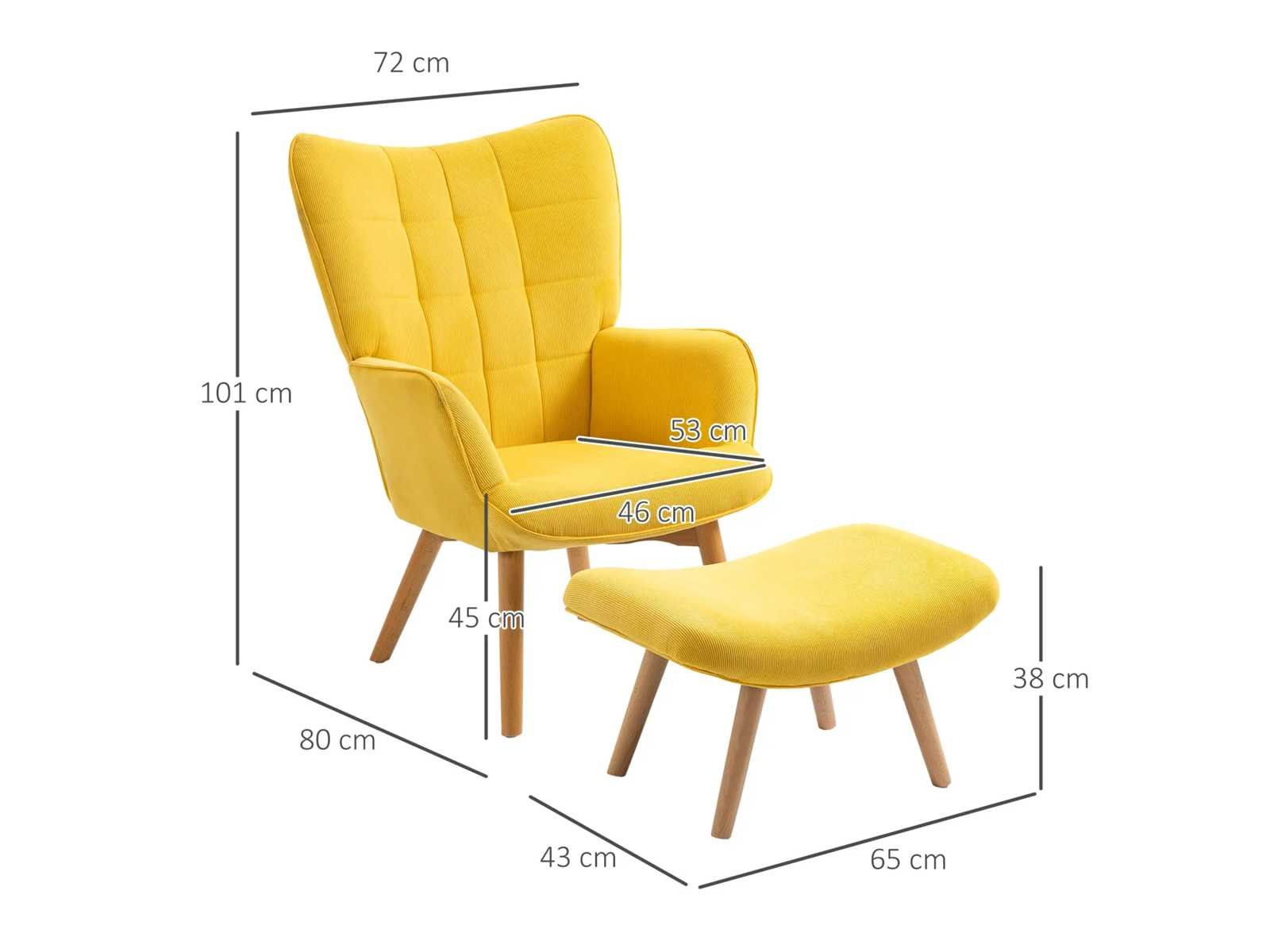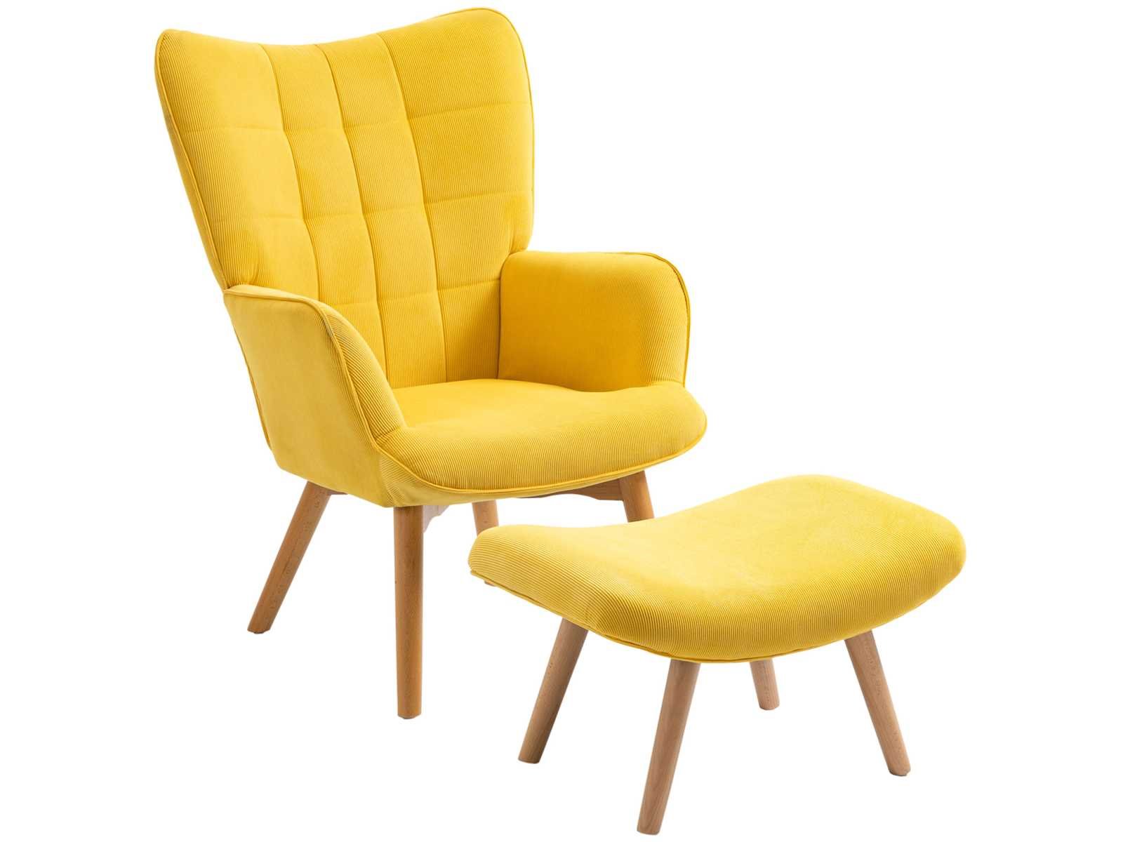 Specificaties: - Kleur: Geel - Materiaal: Beuk, Schuim, Fluweel (100% polyester) - Fauteuilafmetingen: 72L x 80B x 101H cm - Voetsteunafmetingen: 65L x 43B x 38H cm - Zitmaat: 46L x 53B x 45H cm - Kussendikte: 11 cm - Rugleuninggrootte: 70L x 72B x 62H cm - Gewichtscapaciteit: 150 kg (fauteuil), 80 kg (voetensteun) Non