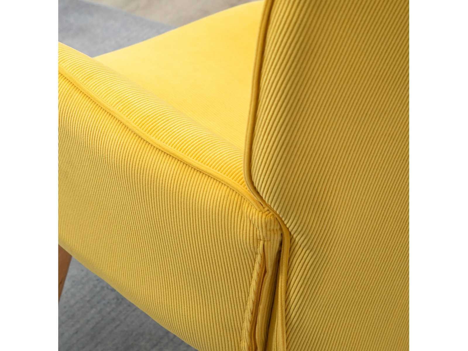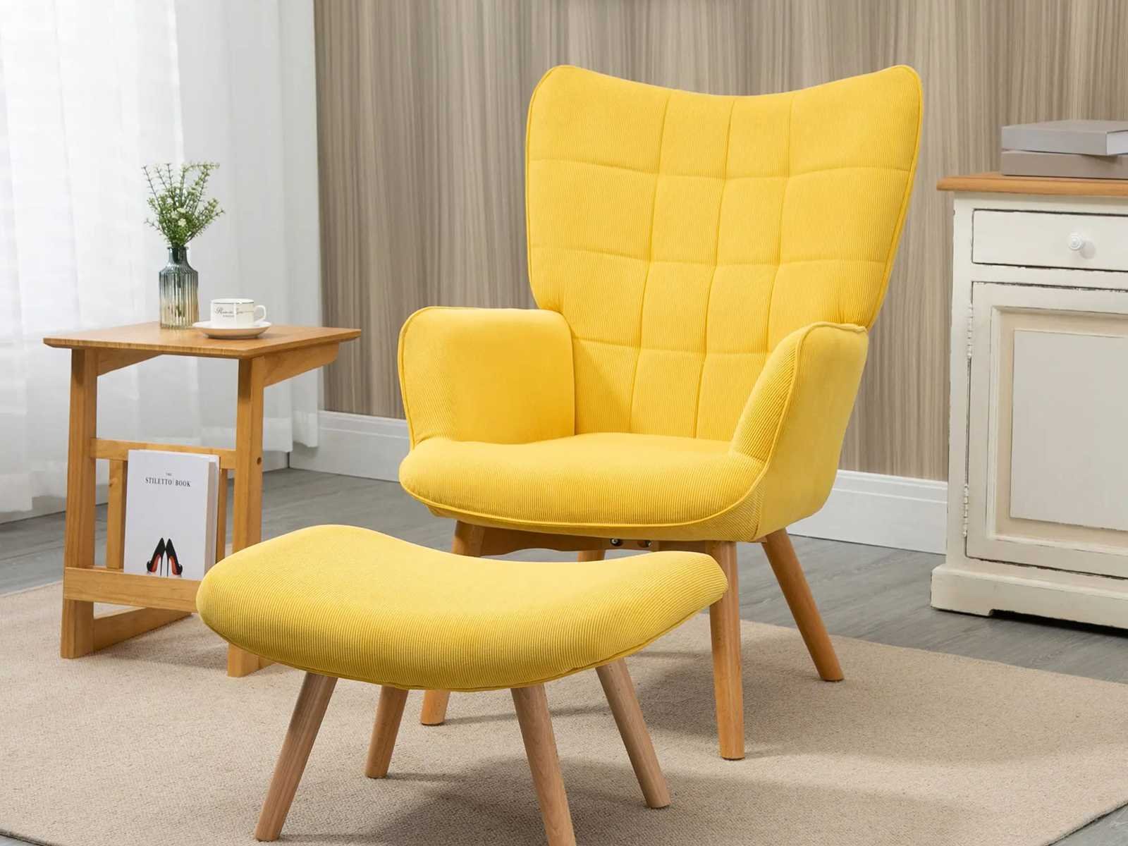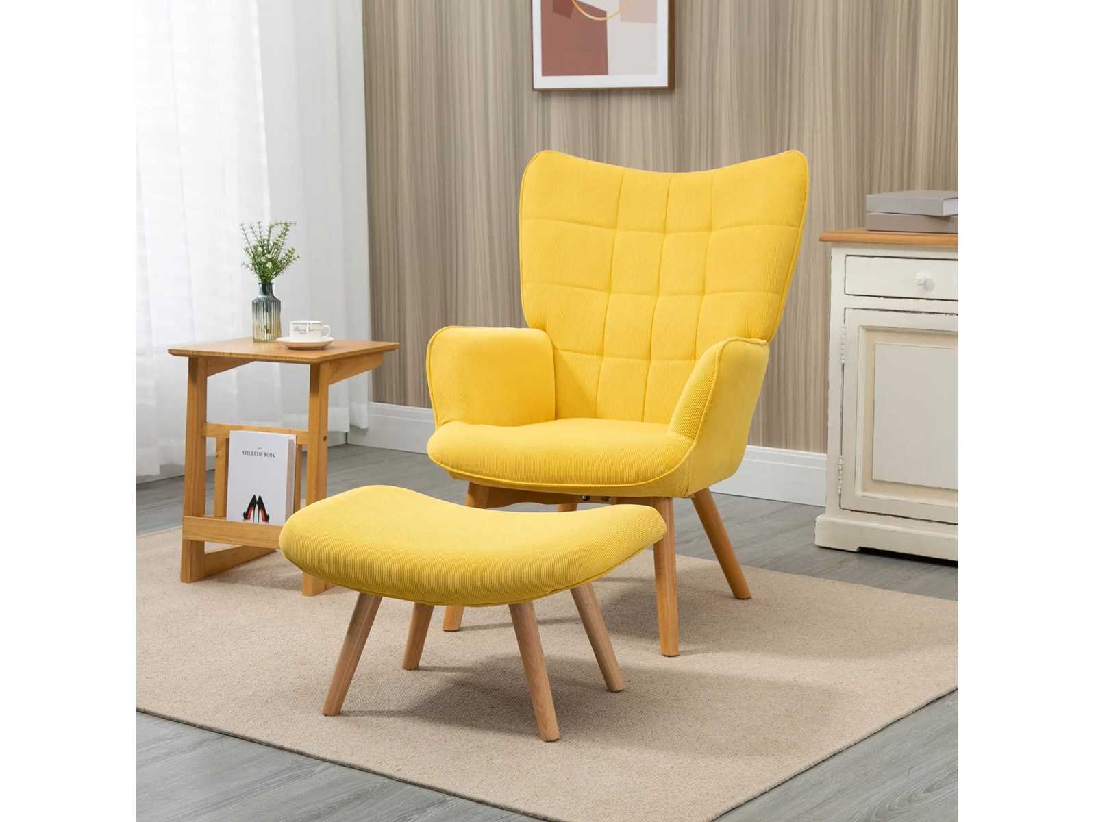 Specificaties: - Kleur: Geel - Materiaal: Beuk, Schuim, Fluweel (100% polyester) - Fauteuilafmetingen: 72L x 80B x 101H cm - Voetsteunafmetingen: 65L x 43B x 38H cm - Zitmaat: 46L x 53B x 45H cm - Kussendikte: 11 cm - Rugleuninggrootte: 70L x 72B x 62H cm - Gewichtscapaciteit: 150 kg (fauteuil), 80 kg (voetensteun) Non