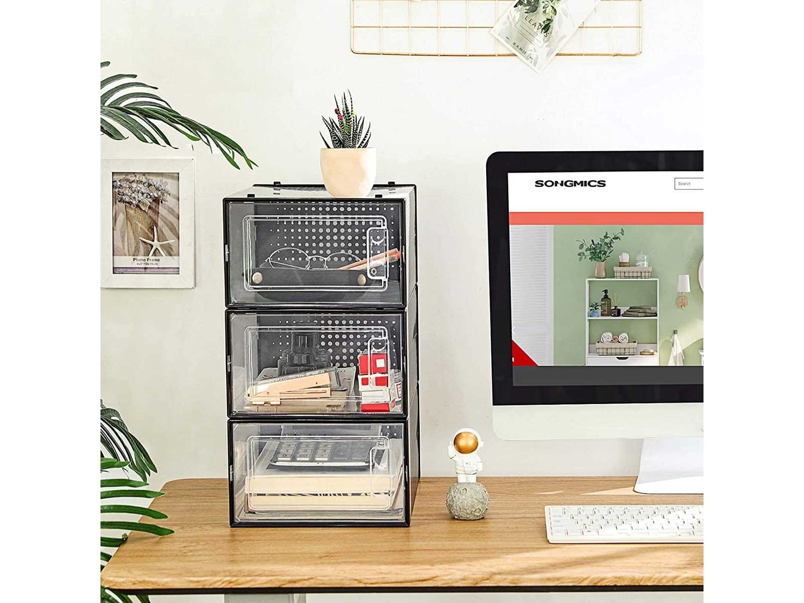 Kenmerken: Kleur: Zwart, transparant Materialen: Polypropyleenkunststof, polystyreenkunststof Externe afmetingen: 33,3 x 23 x 14 cm (L x B x H) Interne afmetingen: 30 x 22,5 x 13,5 cm (L x B x H) Gewicht: 5,3 kg Bezorging: 18 x schoenendoos No Lengte: 33.3cm Breedte: 23cm Hoogte: 14cm