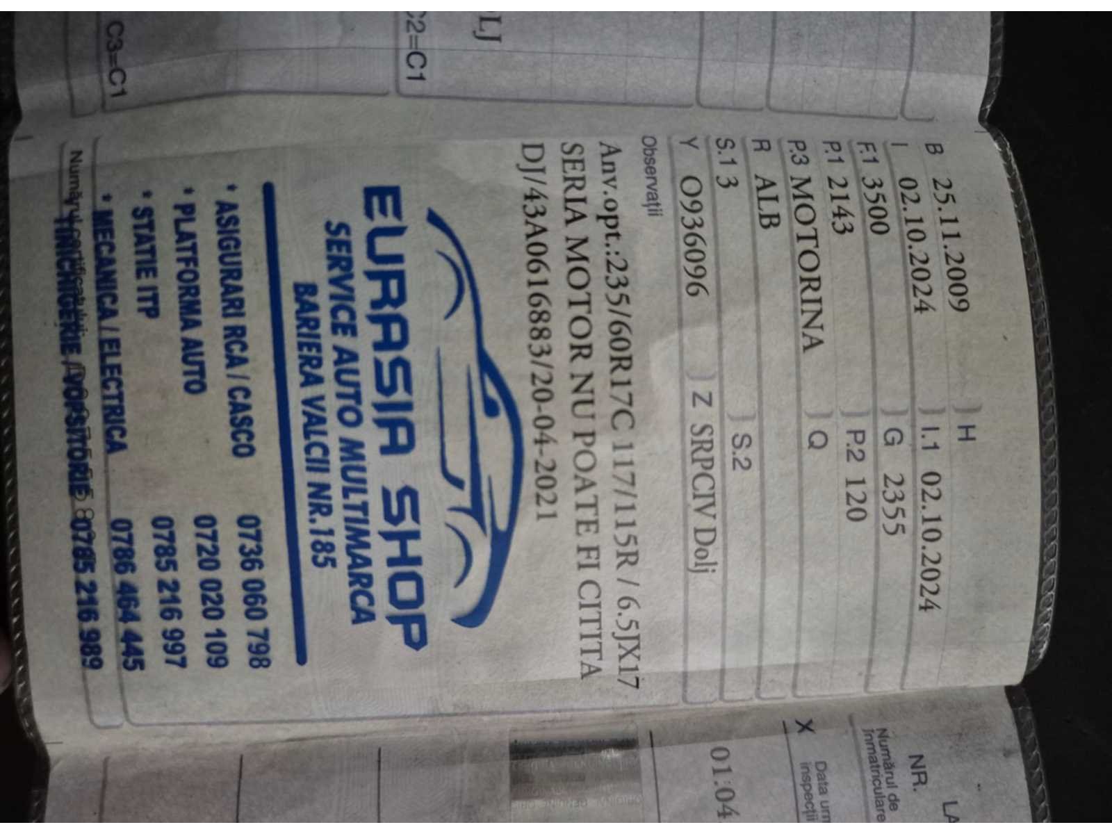 Nee Merk: Mercedes-Benz Type: Sprinter Bouwjaar: 2009 Chassisnummer: WDB9066351S429254 Afgelezen kilometerstand: 691663km Cilinderinhoud: 2143cc Vermogen (kW): 120kW Brandstof: diesel Datum eerste toelating: 25/11/2009 Aantal zitplaatsen: 3 Kleur: Wit Nationaliteit documenten: Roemenië Aantal sleutels: 1 Startinformatie: Start en rijdt