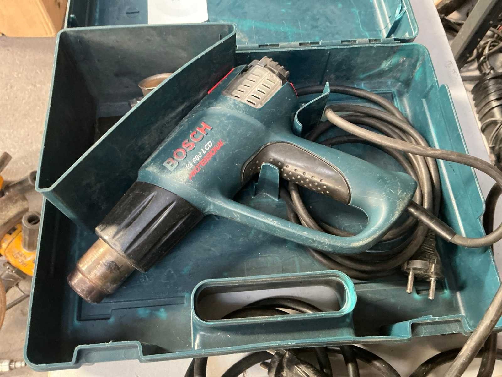Metabo WPB 12-125 Quick haakse slijpmachine. Makita GD0801C rechte slijpmachine. Bosch GHG 660 LCD heteluchtpistool in koffer. Nee