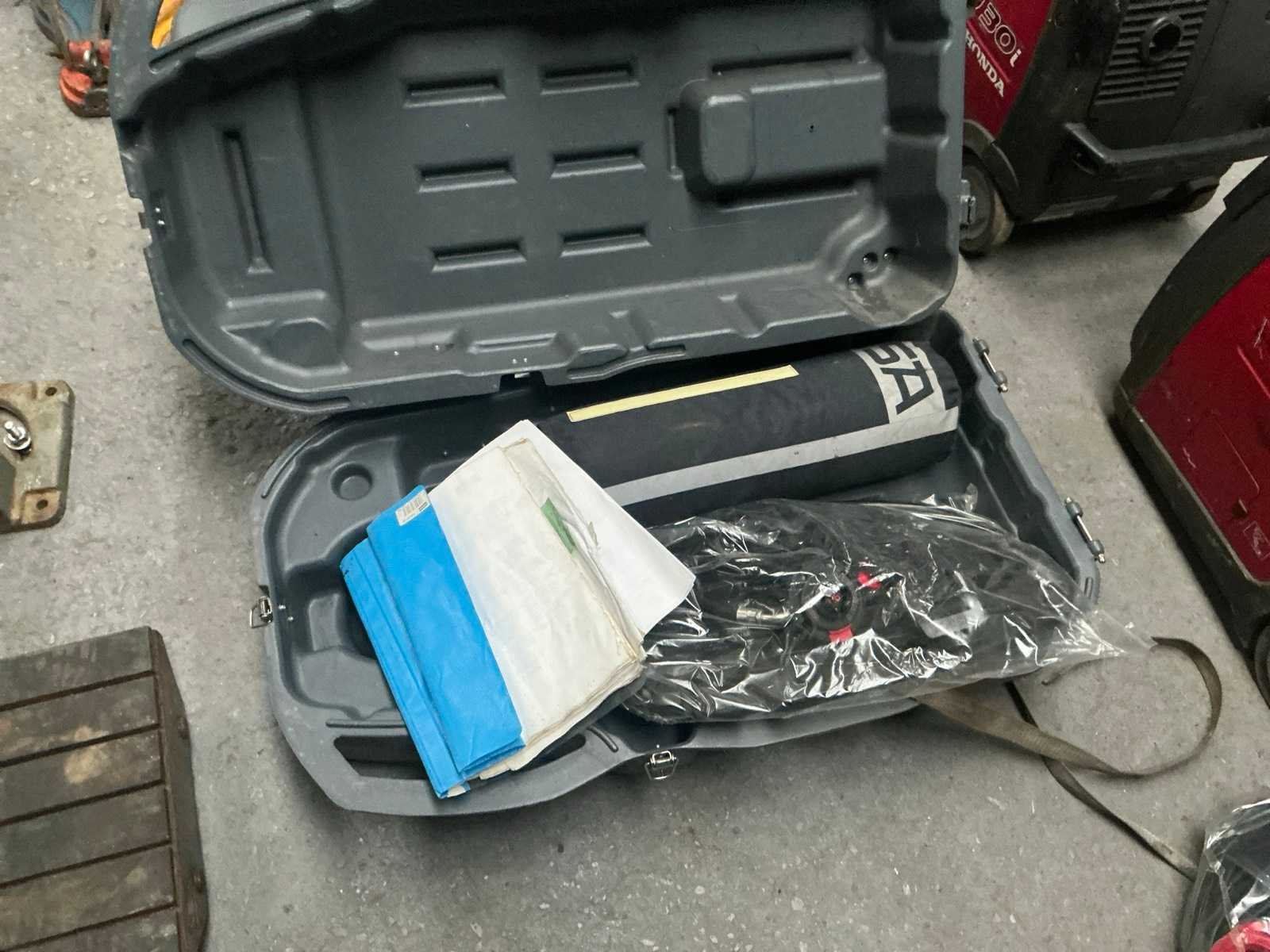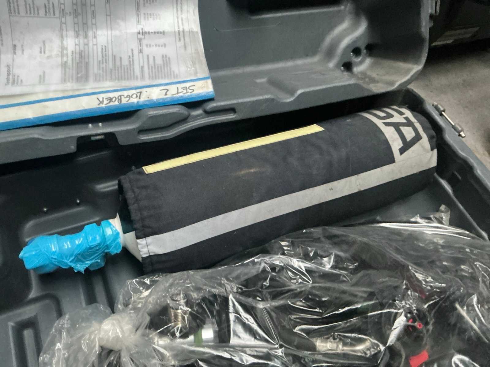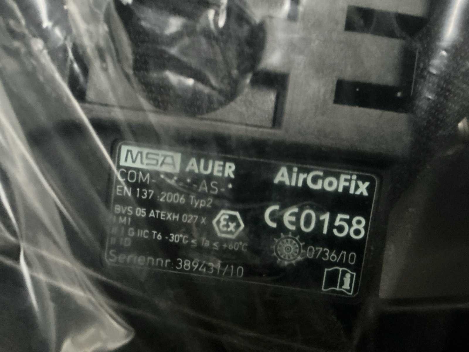 Inhoud: zuurstof fles, chemisch pak, ontspanner, draagtas voor zuurstoffles, gezichtsmasker, zuur handschoenen. Nee Merk: MSA Model: AirGo Compact